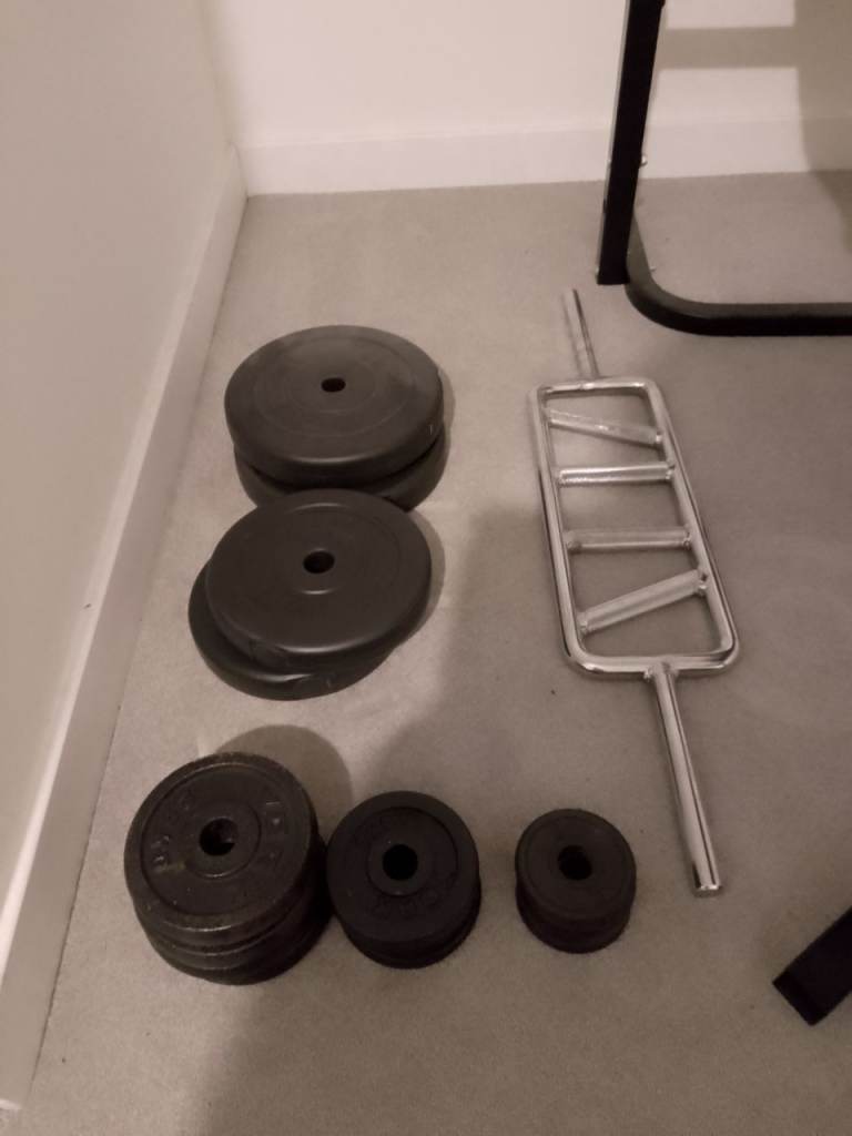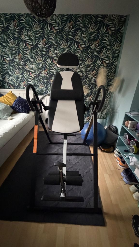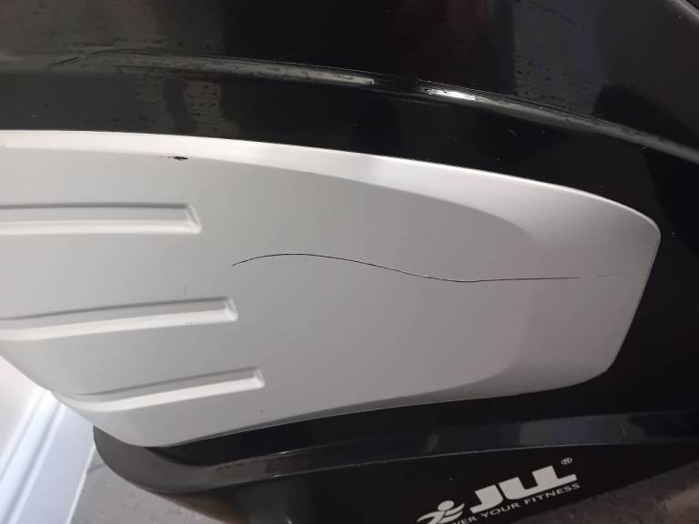 In perfect working order. Has a light scratch to plastic casing. soft, foam seat. Has caster wheels on one end, so easy to move.