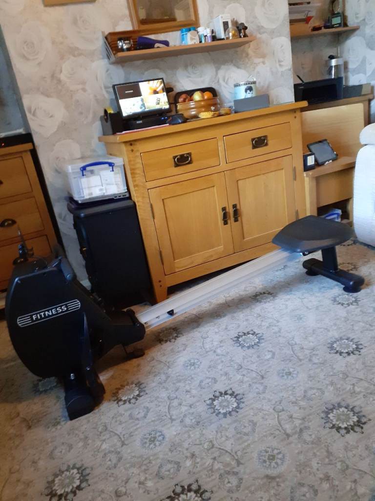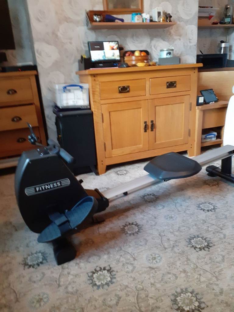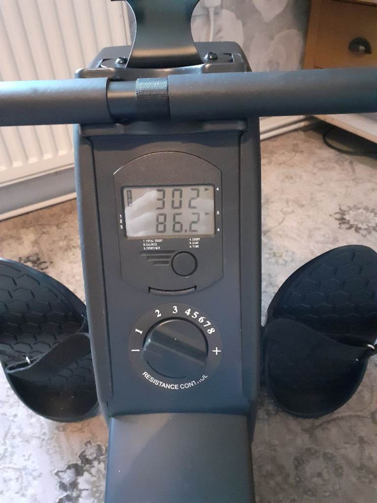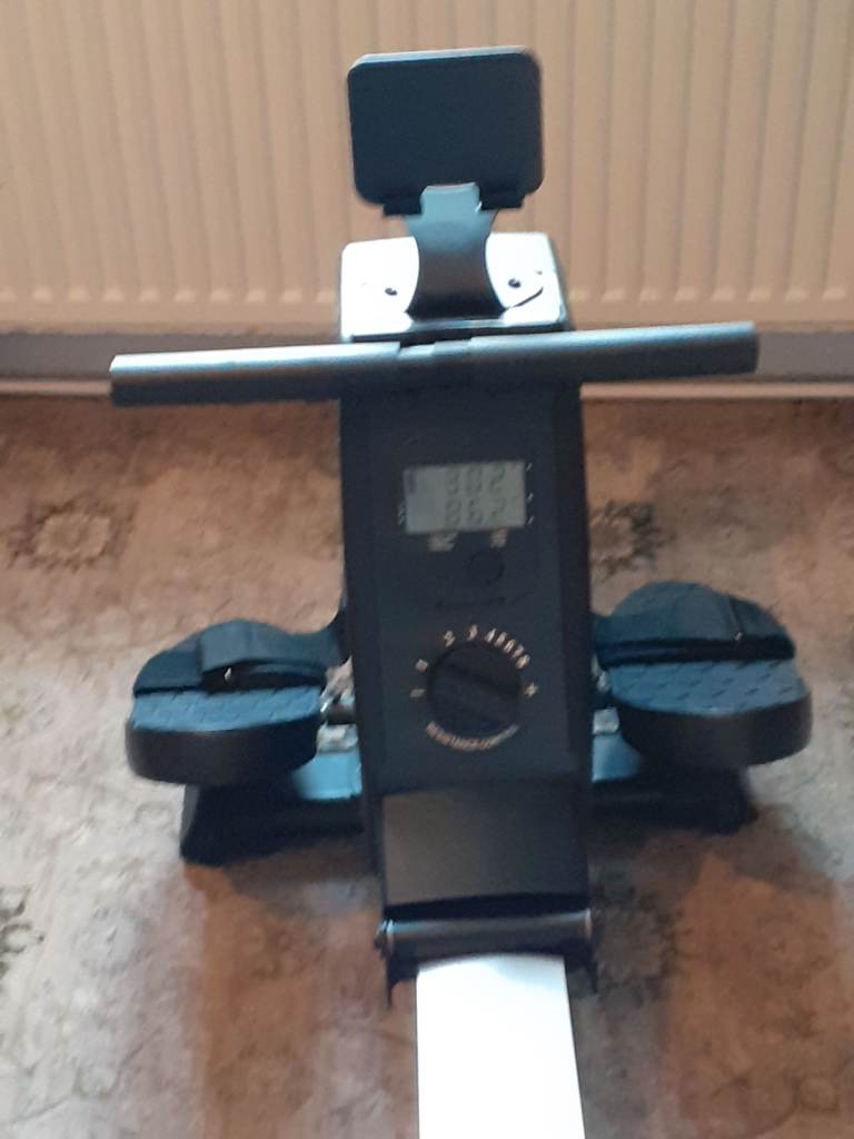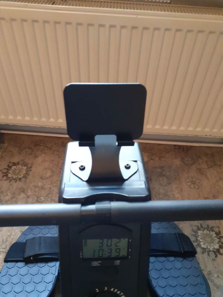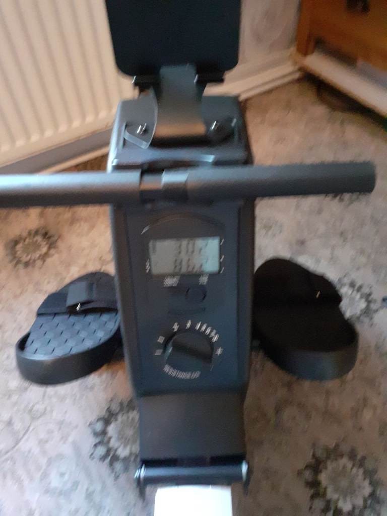 Rowing machine for sale hardly used, with 8 tensions settings and digital settings screen plus mobile tablet holder, rowing machine folds up for storage.