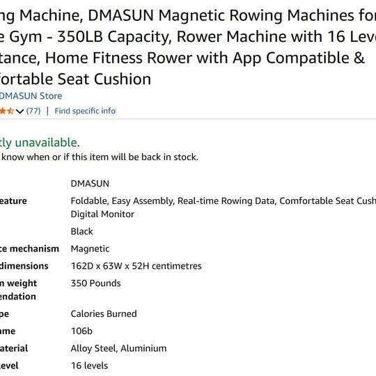 Posting for 12+ yearsUsed Magnetic, foldable Rowing Machines for Home Gym - 350LB Capacity, 16 Levels Resistance