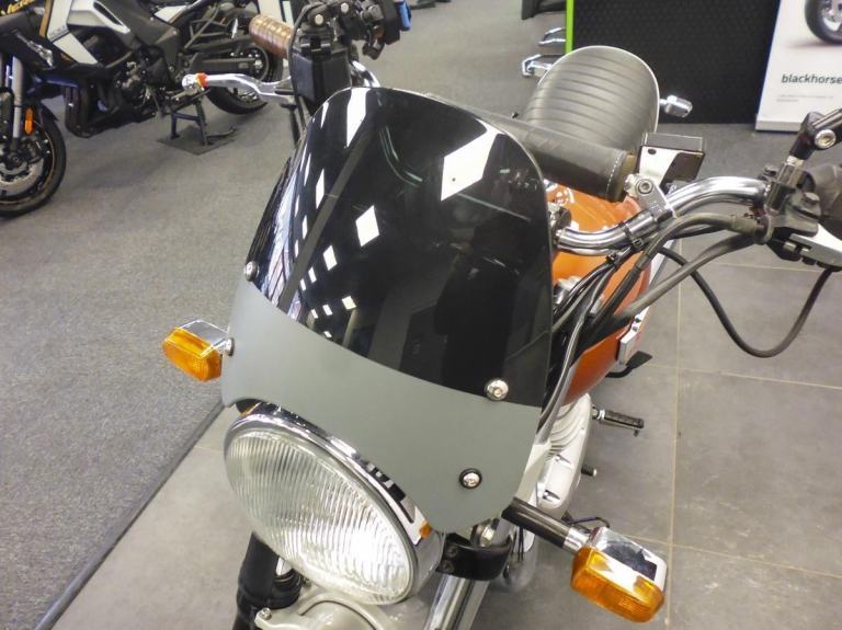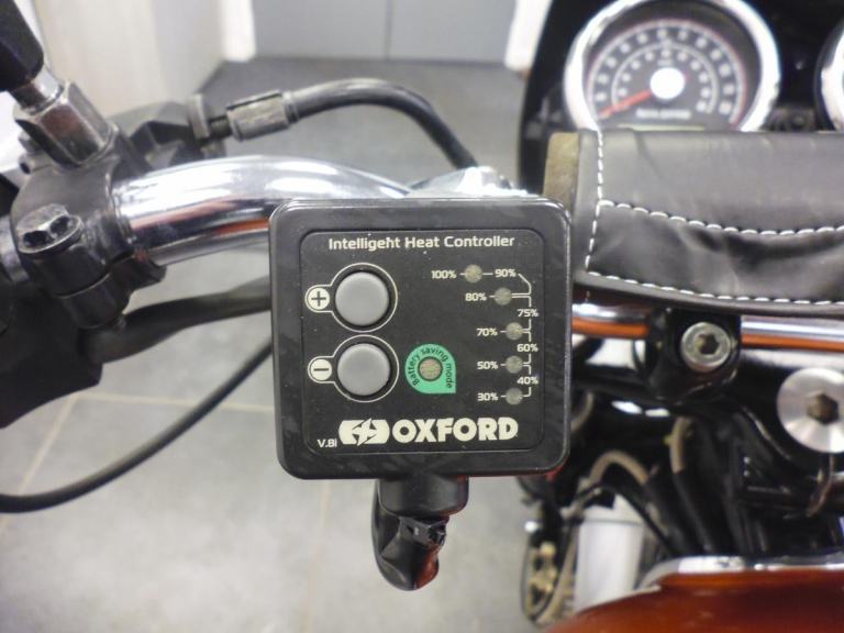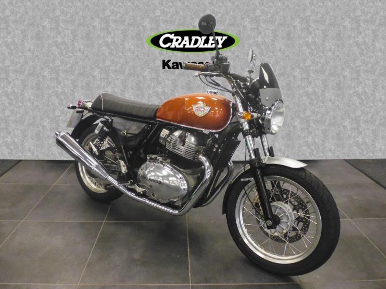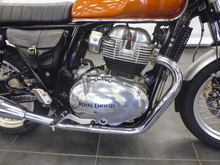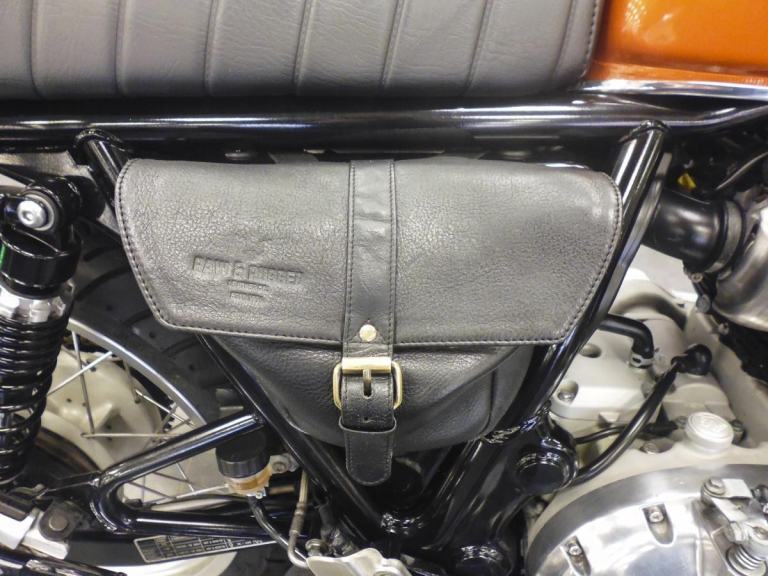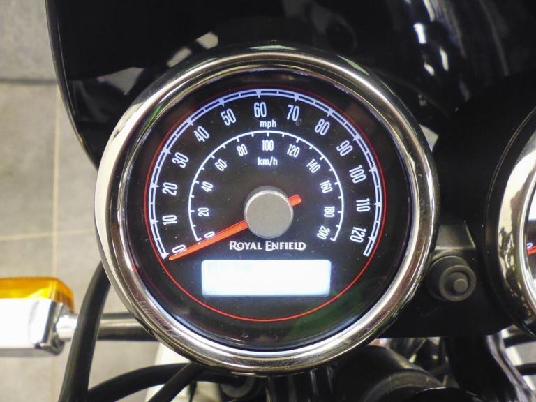 This is a lovely example fitted with a clock, fly screen, cooler guard, centre stand, Upgraded rear shocks, Royal Enfield touring seat, leather grips, quad lock, Oxford heated grips, a fender extender lus a leather pannier bag.
