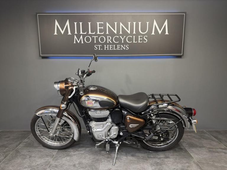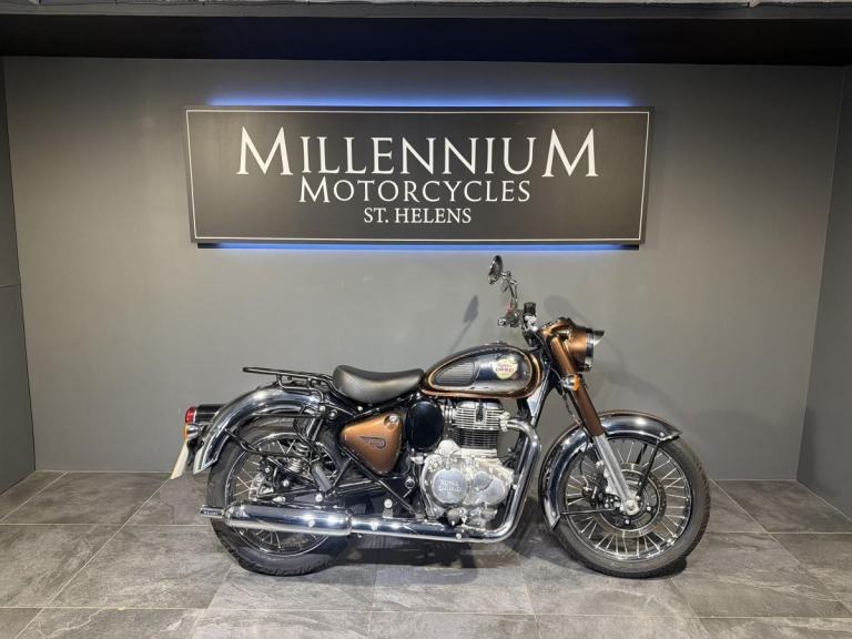 2022 ROYAL ENFIELD CLASSIC 350 CHROME with 5447 miles. This bike is in excellent condition and is in the highly sought after CHROME BRONZE. Choose Millennium Motorcycles for your next bike. Buy with confidence from the North West’s leading Multi-franchise dealership. Your new bike will be inspected by one of our trained technicians. Part Exchange Welcome, Finance available and Nationwide delivery. WhatsApp on [Phone number removed]or call 01744 616161. Reserve or buy online at [Website URL removed] Come pay us a visit with our amazing clothing and accessories department and on site café.