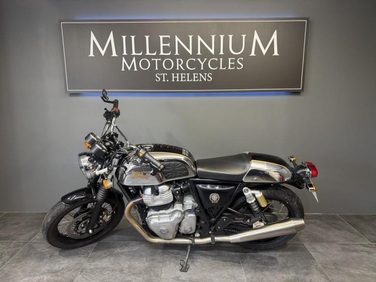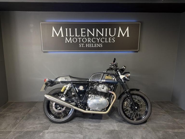 2022 ROYAL ENFIELD CONTINENTAL GT 650 with 7438 MILES. This fantastic ONE OWNDER bike in the highly sought after MR CLEAN CHROME colour is in excellent condition. Comes fitted with AFTERMARKET EXHAUST and 5 SERVICE STAMPS. Choose Millennium Motorcycles for your next bike. Buy with confidence from the North West’s leading Multi-franchise dealership. Your new bike will be inspected by one of our trained technicians. Part Exchange Welcome, Finance available and Nationwide delivery. WhatsApp on [Phone number removed]or call 01744 616161. Reserve or buy online at [Website URL removed] Come pay us a visit with our amazing clothing and accessories department and on site café.