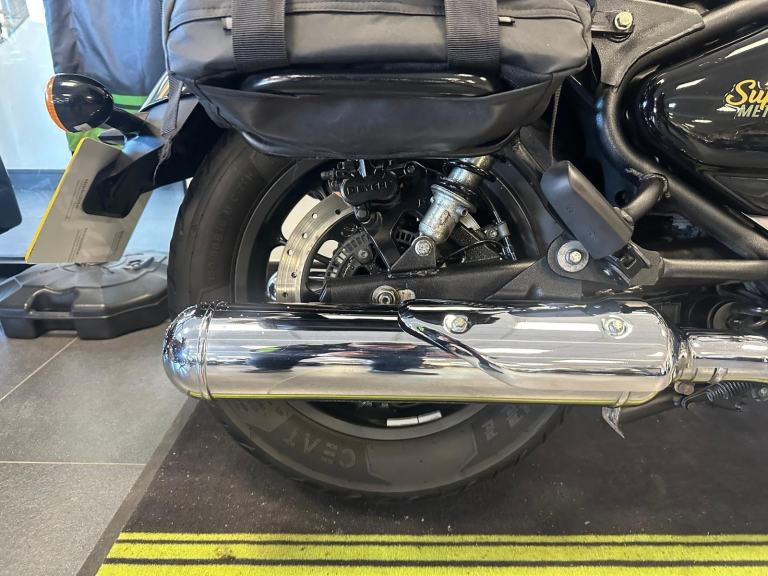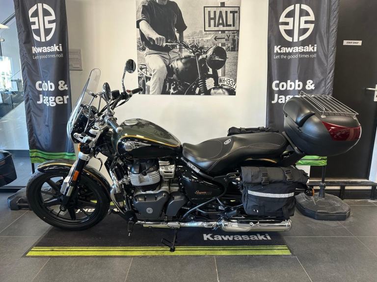Just in this fabulous Super Meteor comes with all the best touring accessories such as top box, saddlebags, screen and engine bars.
