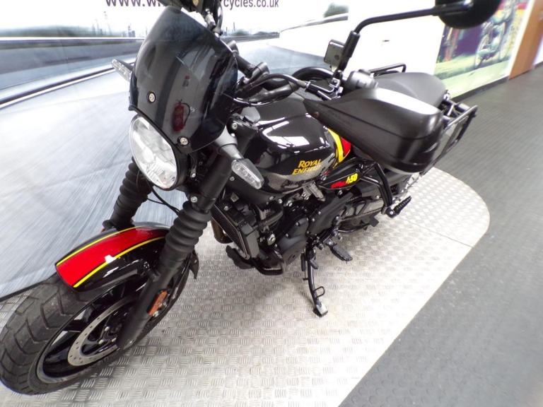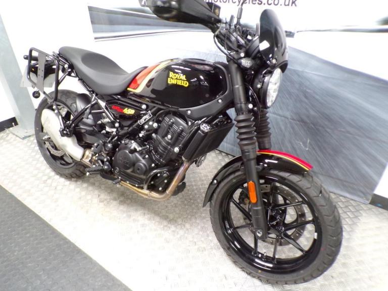 THESE RUGGED LOOKING GO ANYWHERE BIKES FROM ROYAL ENFIELD HAVE BEEN A BIG SUCCESS FOR THE COMPANY, POWERED BY THE 452cc SINGLE-CYLINDER MOTOR. THESE BIKES PRODUCE AROUND 40hp AND HAVE AN IMPRESSIVE TORQUE FIGURE OF AROUND 40Nm. THEY ARE FUN TO RIDE TOO, WHICH IS WHAT RIDING A MOTORCYCLE IS ALL ABOUT. THEY HAVE THAT KINDA "I'M UP FOR THE CHALLENGE" LOOK ABOUT THEM. DUAL CHANNEL ABS AND ECO AND PERFORMANCE MODES ARE EASY TO ACCESS ON THE 4" ROUND TFT CLUSTER. LED LAMPS ALL ROUND AND A KERB WEIGHT OF AROUND 173Kg MAKES THESE BIKES A PLEASURE TO MOVE ROUND AT ANY SPEED.