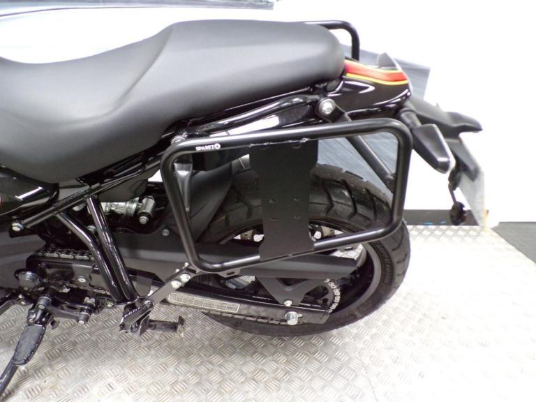 THERE ARE SOME VERY TASTEFUL AND USEFUL EXTRAS FITTED TO THIS BIKE, KNUCKLE GUARDS, FRONT FENDER EXTENDER, RADIATOR GUARD, OXFORD HEATED GRIPS, PANNIER RAILS AND A FRONT SCREEN.
