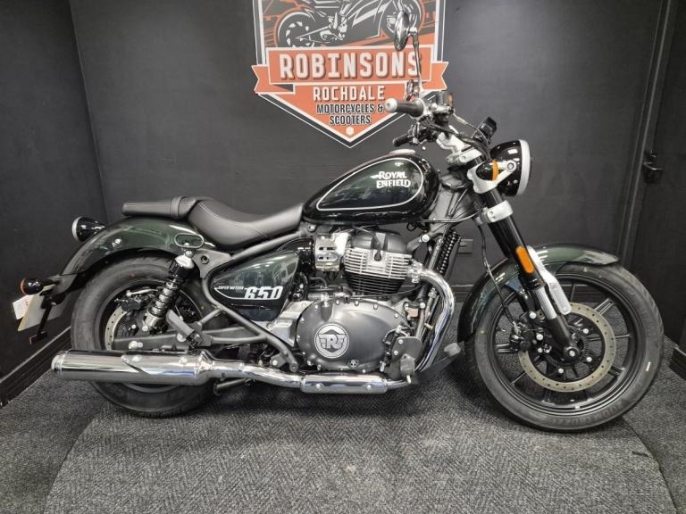 25 Plate Royal Enfield SUPER METEOR 650 IN ASTRAL GREEN Only 83 miles, Great saving on list price for this very low mileage ex demo, balance of the Royal Enfield warranty.