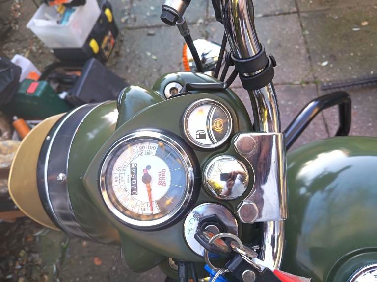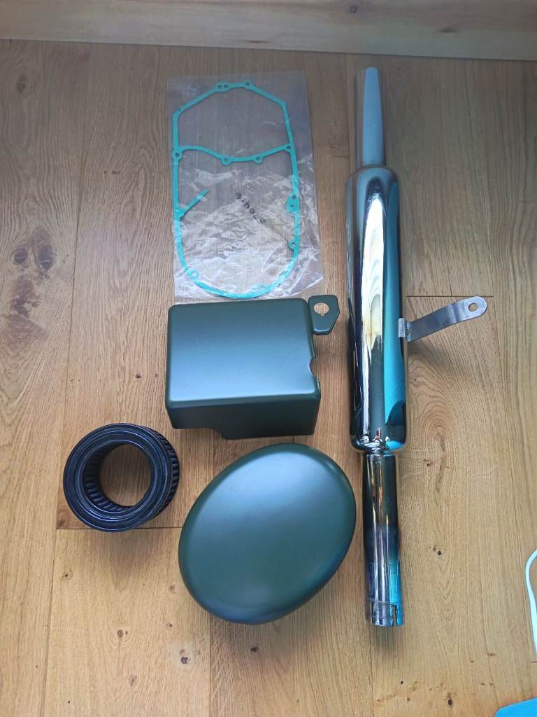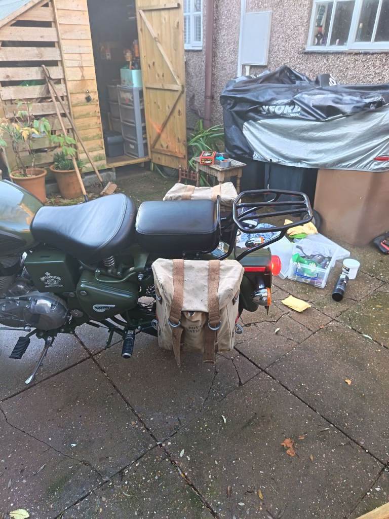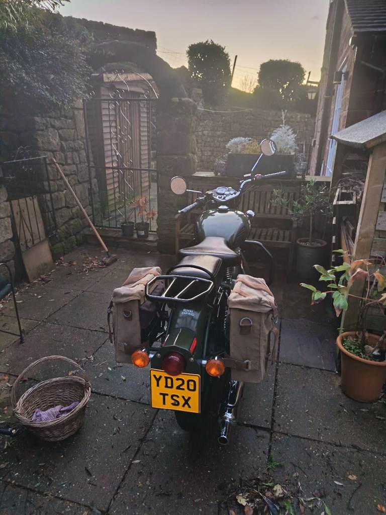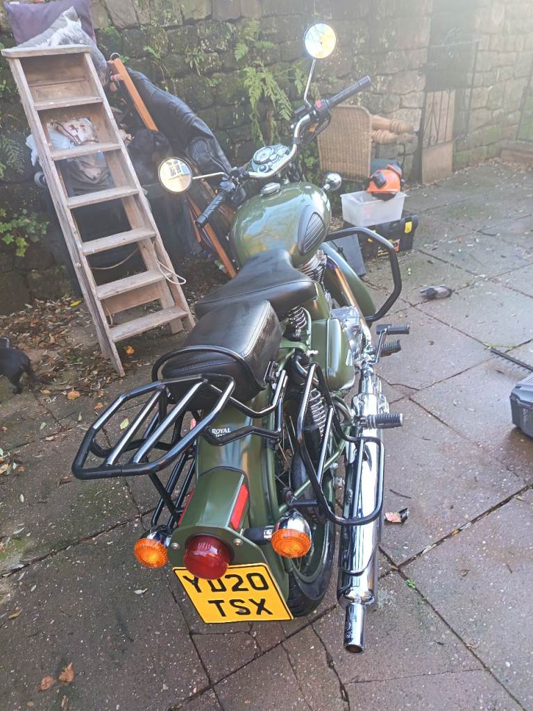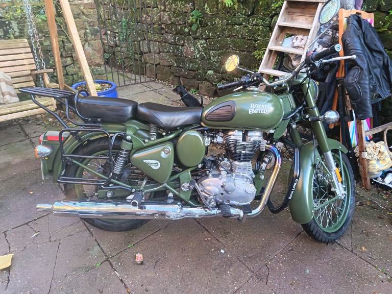 500cc, single cylinder with custom exhaust and cloth military style panniers. Army green colour. Pillion passenger seat and luggage rack. Lovely bike to ride. No longer in production. Kept undercover and not driven in the rain. Comes with added extras I. E. spare exhaust and spare luggage rack. No previous advisories on MOT. MOT till May 2026. Please get in touch for viewings. Location is Whiston, Staffordshire.