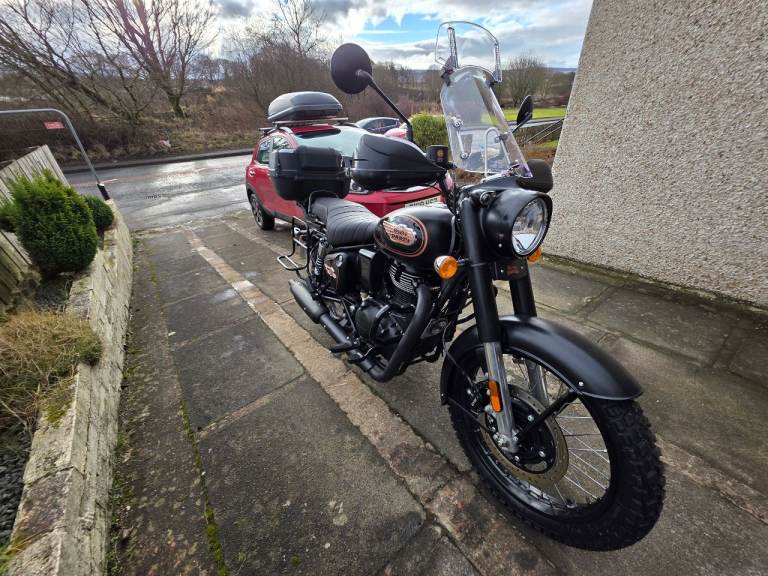 Finished in classic Bullet styling, this bike is powered by Royal Enfield’s smooth and characterful 349cc single-cylinder engine, delivering relaxed performance, great fuel economy, and an enjoyable ride on both town roads and open A-roads.