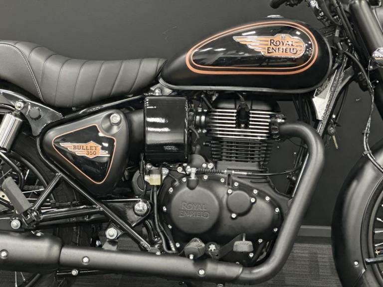 Introducing the amazing Royal Enfield Bullet 350, a motorcycle that is ready to conquer the roads with you. With its classic black and gold colour, this beauty exudes timeless style and sophistication. The 349cc engine provides plenty of power and torque, making it perfect for navigating both city streets and country roads with ease. Whether you're cruising through the urban jungle or exploring scenic routes, this motorcycle is your reliable companion.
