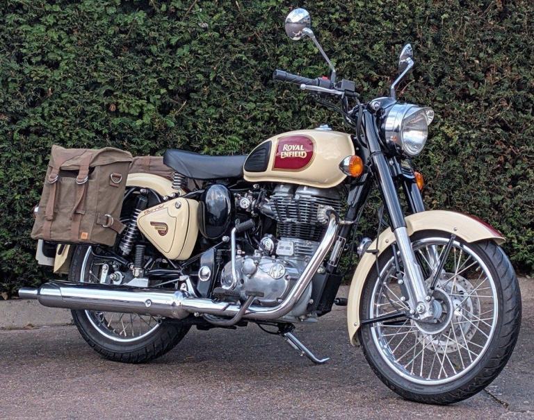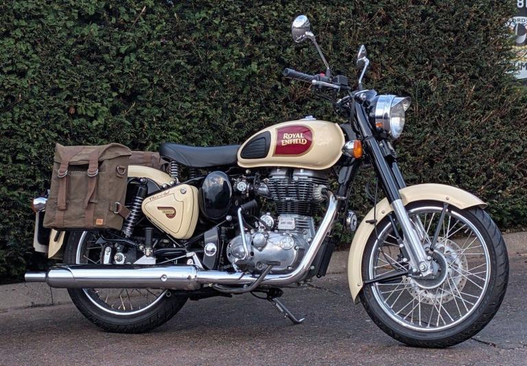 Royal Enfield Bullet Classic, 2016, Just 400 miles, recently serviced and in immaculate showroom condition as you'd expect. Panniers complete the vintage style
