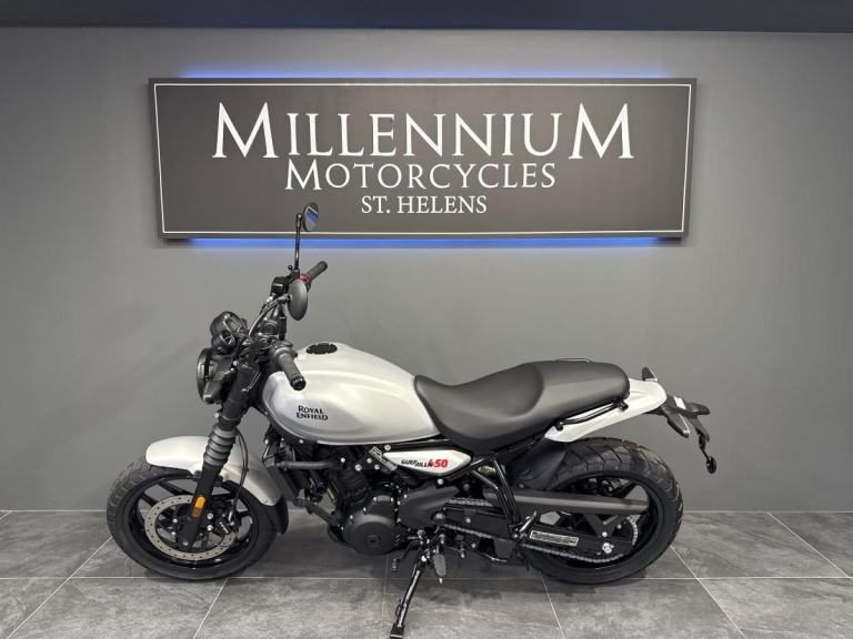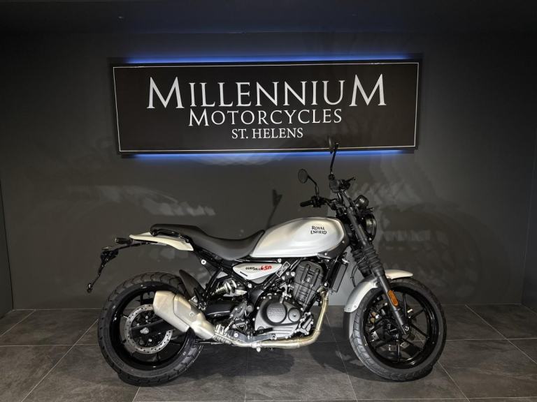 ROYAL ENFIELD GUERRILLA 450 IN SMOKE SILVER - SPECIAL OFFER. The all-new Royal Enfield Guerrilla 450, a premium modern roadster built for visceral responsiveness, raw instinct and pure intuition, is a 'declaration of independence' that defiantly stands apart, making it a formidable 'all-roadster' Choose Millennium Motorcycles for your next bike. Buy with confidence from the North West’s leading Multi-franchise dealership. Your new bike will be inspected by one of our trained technicians. Part Exchange Welcome, Finance available and Nationwide delivery. WhatsApp on [Phone number removed]or call 01744 616161. Reserve or buy online at [Website URL removed] Come pay us a visit with our amazing clothing and accessories department and on site café.