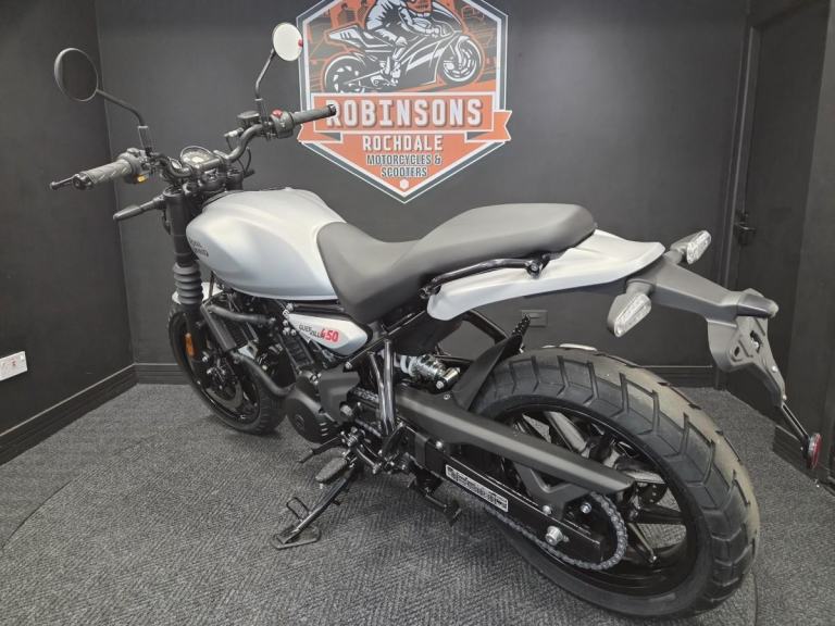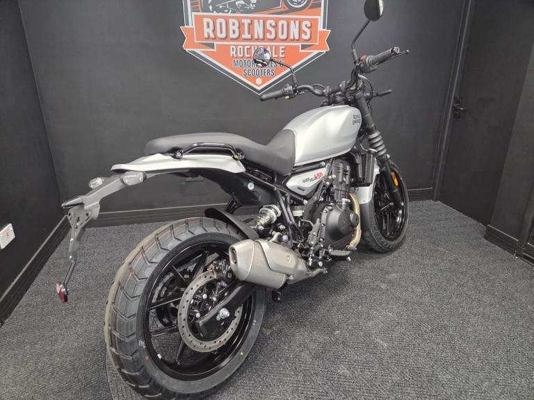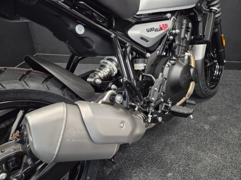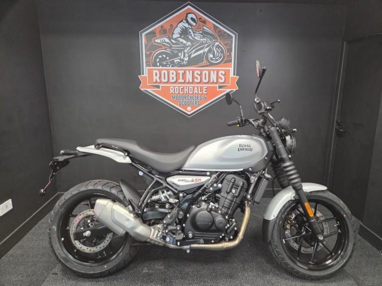 ROYAL ENFIELD GUERRILLA 450 in Smoke Silver Analogue only at this amazing price. Now available on 5.9% APR HP and PCP. Limited numbers at this great price so call today. Featuring the Sherpa 452cc engine with rider modes, Tripper, Showa suspension, tubeless tyres and much more. The Guerilla 450 is a new Roadster for the streets. With real world capability suitable for novice and experienced riders alike. . Please call or WhatsApp us on 01706 716650. As one of the North's premier Royal Enfield dealers with great access to the motorway network and surrounded by amazing country roads we are well placed to look after you. Part exchange considered and finance can be arranged.