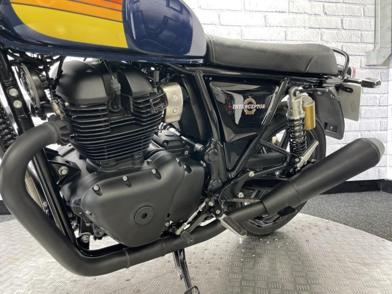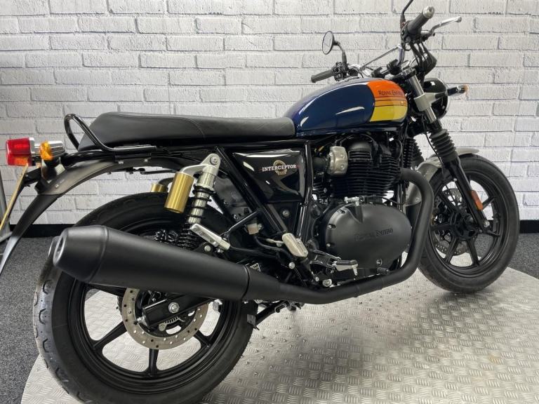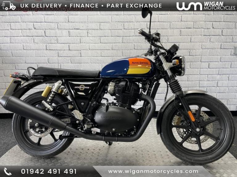 ROYAL ENFIELD INTERCEPTOR 650 in Barcelona Blue. 0 MILES Pre-Registered UK bike with balance of Royal Enfield warranty from date of registration in December 2024. Features... 650cc Parallel Twin cylinder engine, light alloy wheels, timeless design, comfortable riding position, wide handlebars, low seat height (804mm) and ABS as standard. Comes complete with 2 keys and owners manual. HP or PCP finance and UK Nationwide Delivery available. Part Exchange welcome. £49 administration fee applies. CALL US NOW 01942 491491... PLUS OTR