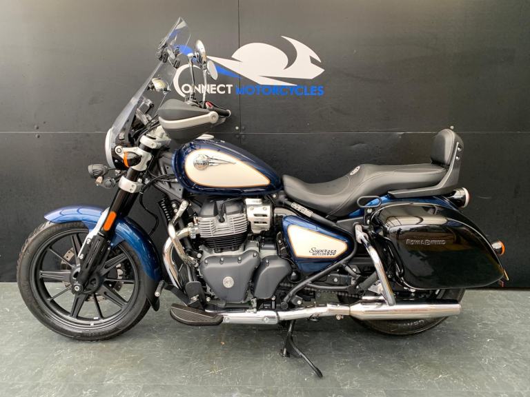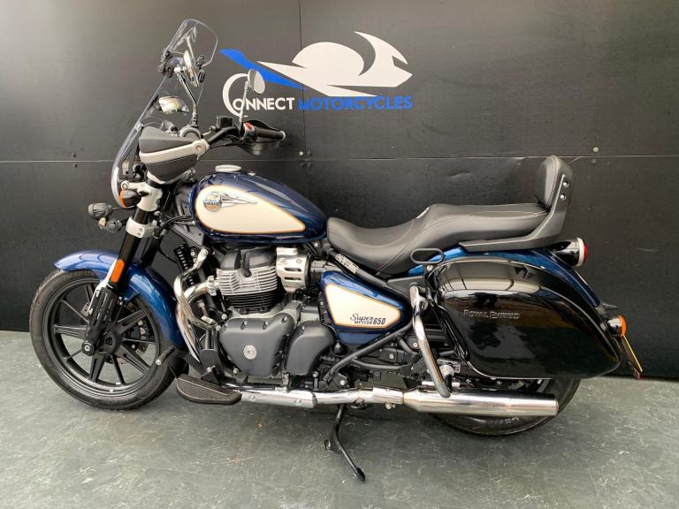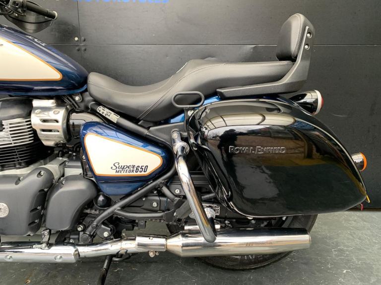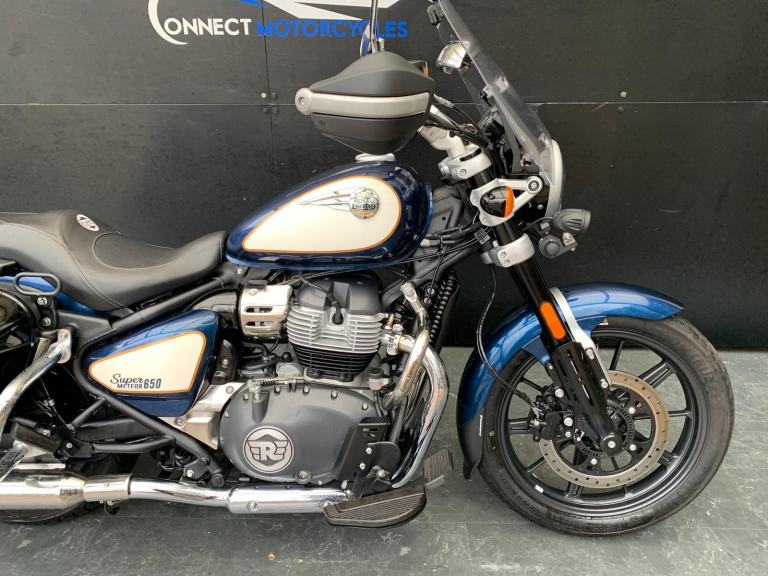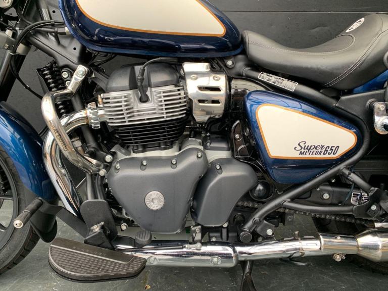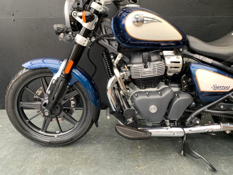 Here we have for sale a 2024 Royal Enfield Super Meteor 650 with a low mileage of 2722 miles. This bike is in great condition and fitted with many extras including bar risers, front & rear crash bars, factory paniers and a RE precision exhaust. The tyres are good , the first MOT is due: 04/07/2027. The bike will be serviced at the current mileage and be sold with a 3 months parts and labour warranty. We have the V5, 2 sets of keys, the Owner's manual and service book for this bike. Finance available subject to status and extended warranties, please contact us for details.