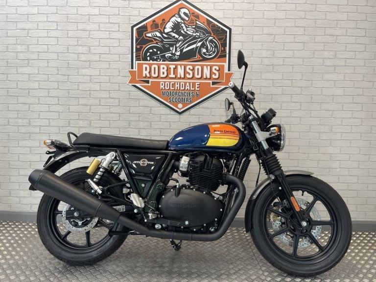Pre Registered machines from £4499 The new Royal Enfield Interceptor 650 Dark Robinsons of Rochdale Your official dealer for Royal Enfield. The Royal Enfield Interceptor marks the return of one of Royal Enfield's most loved classic motorcycles. Hailing from a time when all that mattered was that the California sun was out and the surf was up, the new Interceptor retains every bit of charm that made it a legend. All new colourways will come with functional and ergonomic features like enhanced seat comfort, new switchgear, a USB charging port and an all new LED headlamp. The new blacked out variants on the Interceptor and the Continental GT will feature blacked-out engine and exhaust parts. This look adds to the aesthetics of the motorcycle, seamlessly fusing with its chassis