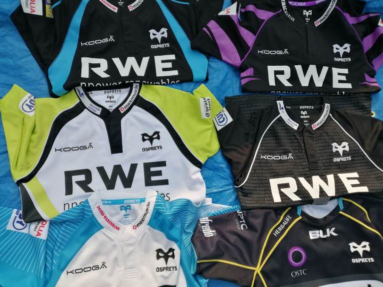 8 x Neath OSPREYS Small Rugby Shirts. Small Adults/Teenagers in excellent, clean condition.See pics. All shirts are in faultless