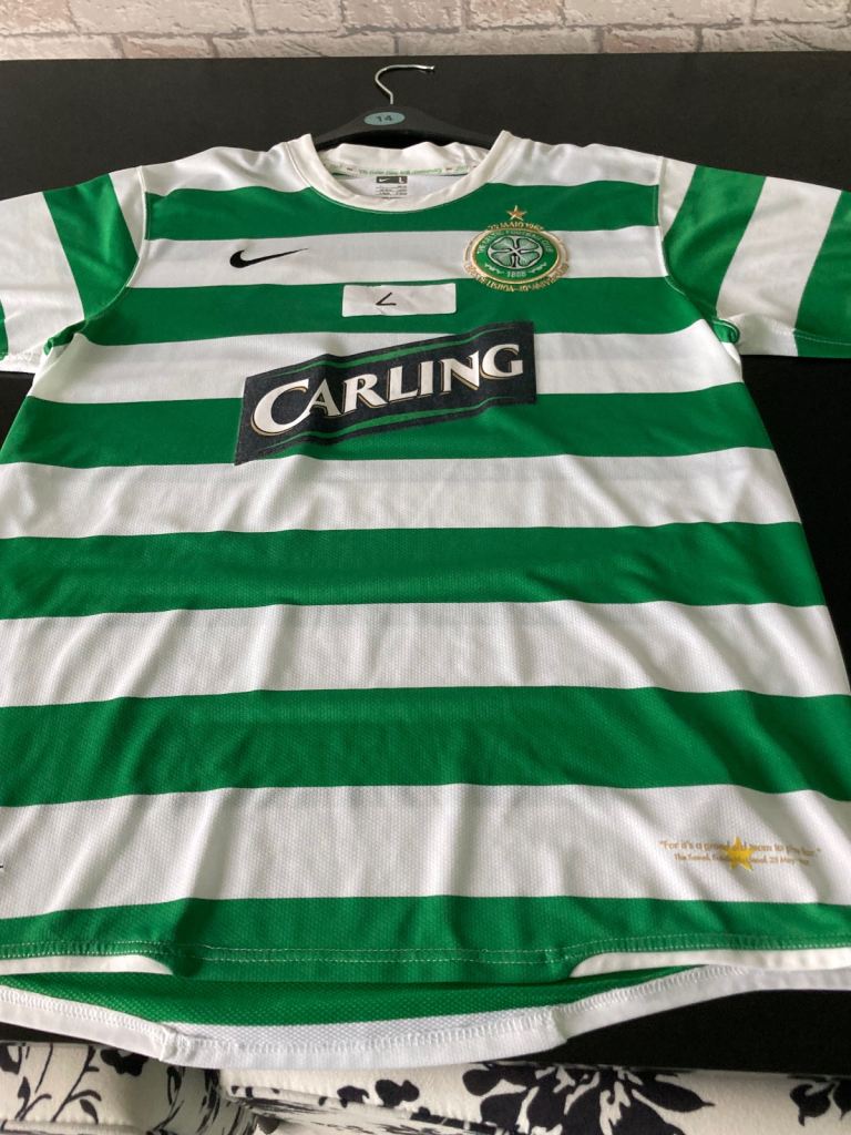 One tracksuit top 7 Celtic football tops all in mint condition text not working on phone will need to phone me direct on £150 for the lot.100 ono