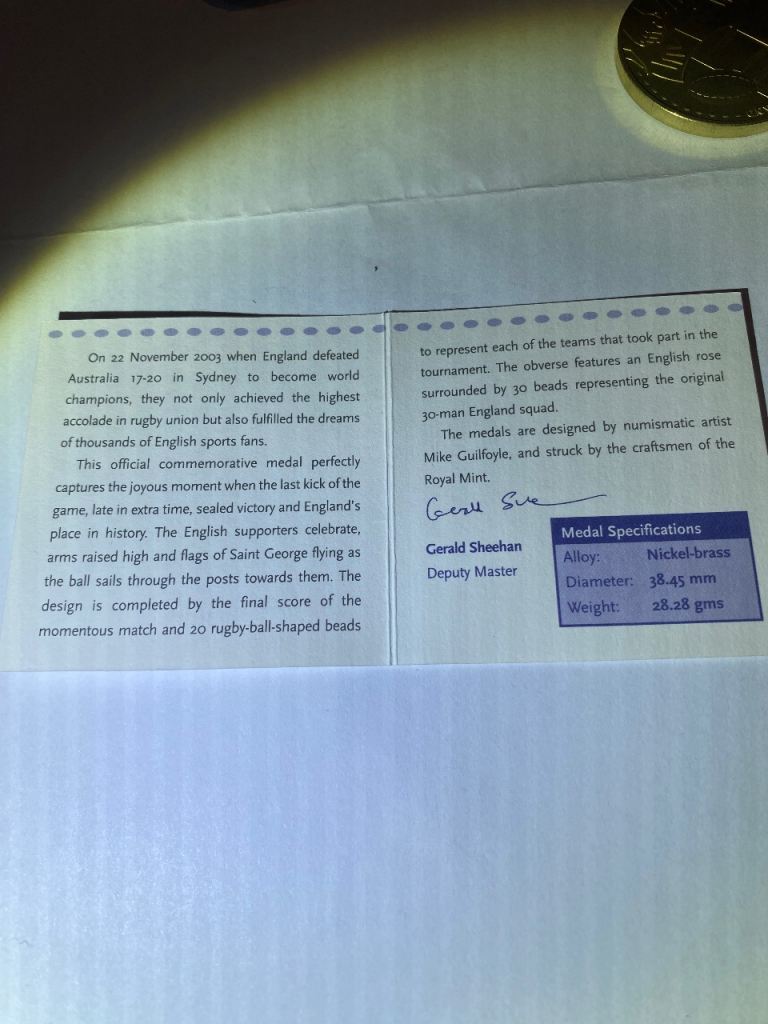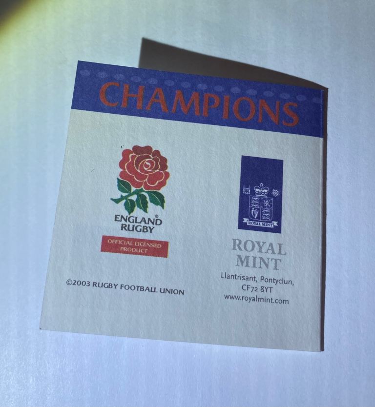 England Rugby 2003 World Champions Commemorative Medal From Royal Mint