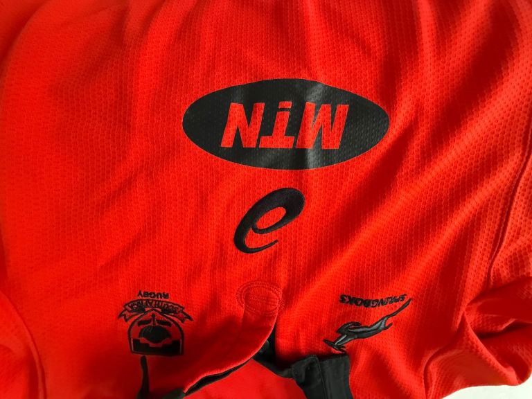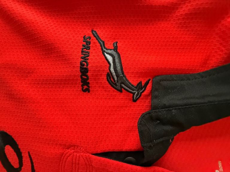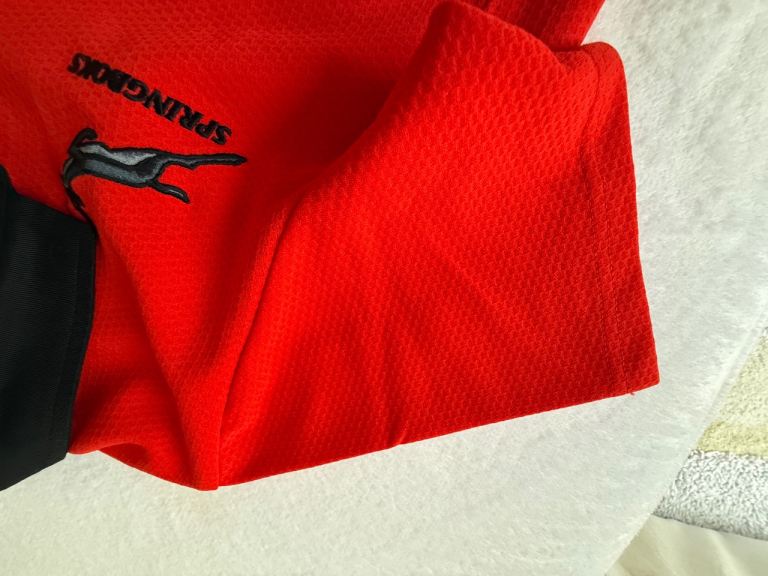 Rare Springboks Alternate jersey for 2017/18 season. Genuine Asics lightweight jersey, new with tags in original packaging. Buttoned collar, embroidered badges. Official licensed product, made in South Africa. This jersey was worn for only one game, a victory over the Pumas in Salta, Argentina in 2017.