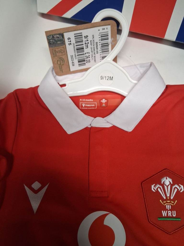 WALES BABY RUGBY SHIRT.9 TO 12 MONTHS OFFICIAL.WRU COLLECT ABERBARGOED
