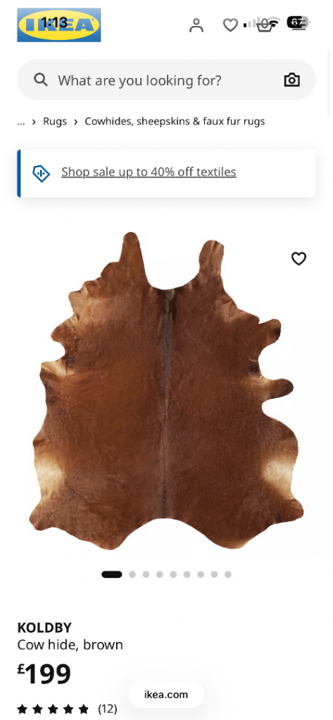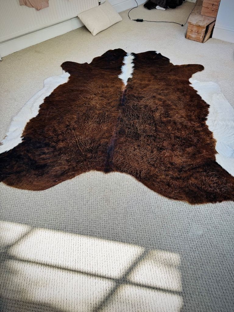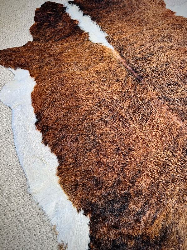Beautiful large cowhide rug. See pictures as new condition