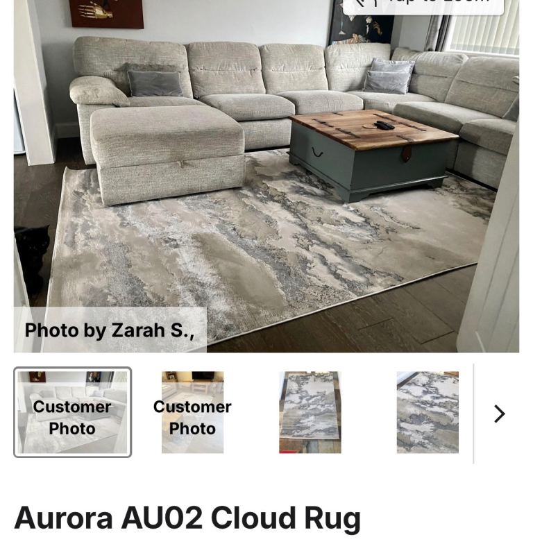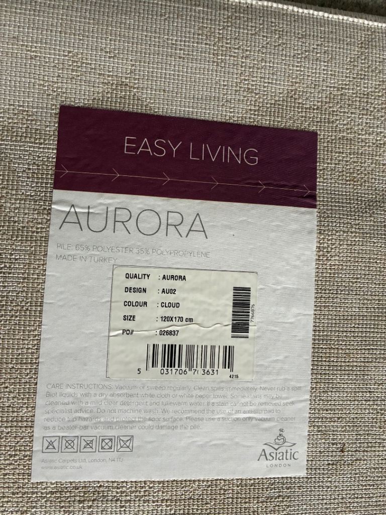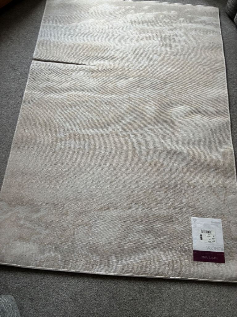 120cmx 170cm - the rug has hardly been walked on as there was a coffee table on top of it, a little crease from having said coffee table on, would think it would straighten out now it’s not on. Still available to buy online - last 2 pics are from the internet.