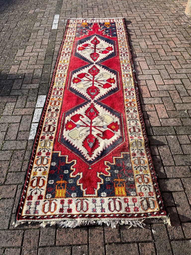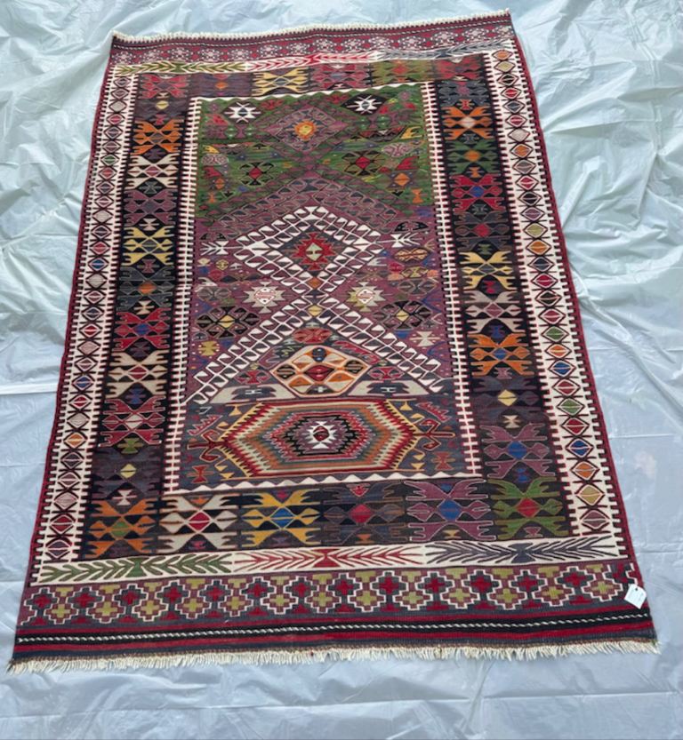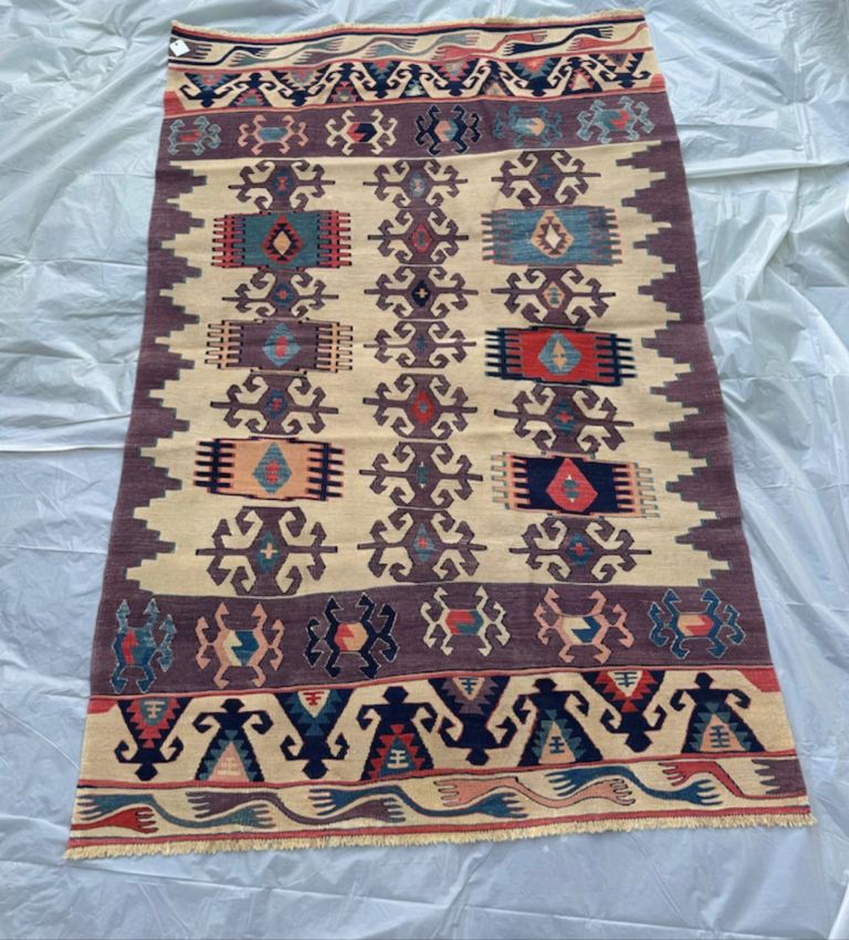 Flatwoven synthetic and Machine washable.