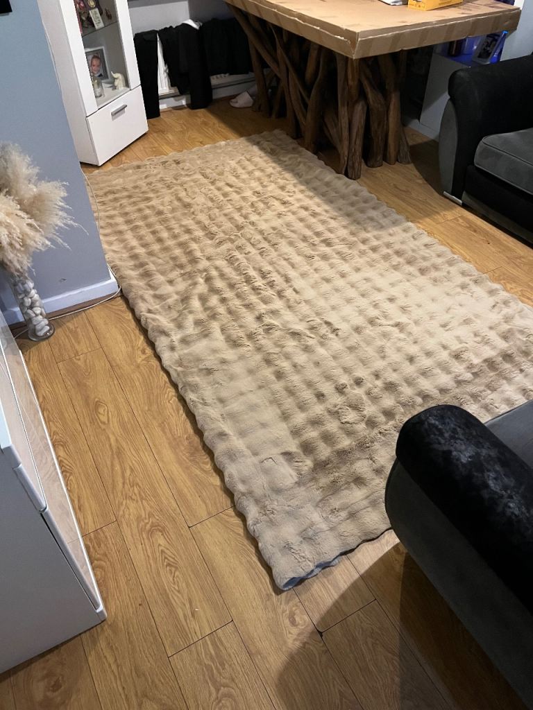 Nice fluffy fur really soft cream rug . Very large approx size is 290x218