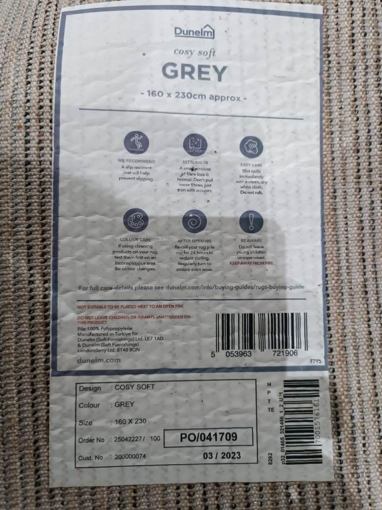 This Cozy shaggy grey rug from Dunelm is thick and soft, good condition only had it one year, decided to change colour theme. Pet free and smoke free home and extremely clean