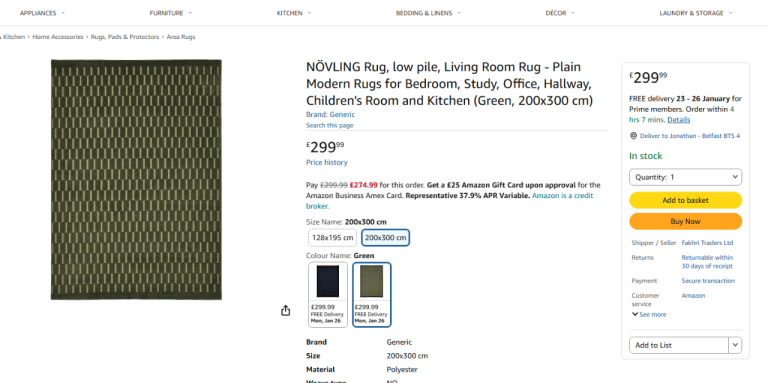Green Ikea NÖVLING Rug, 175 x 235cm