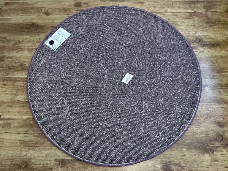 Round Ikea STOENSE rug in a deep purple colour, 130 cm diameter.