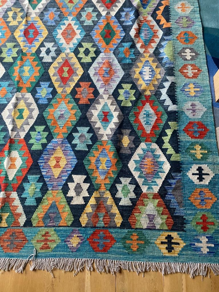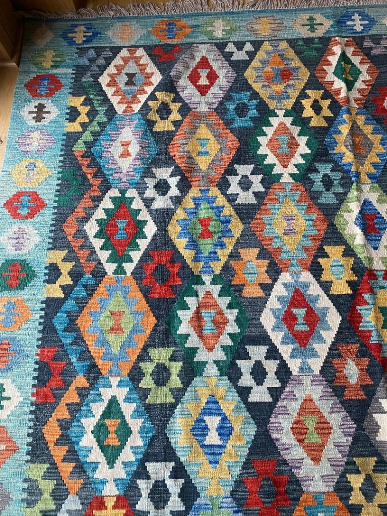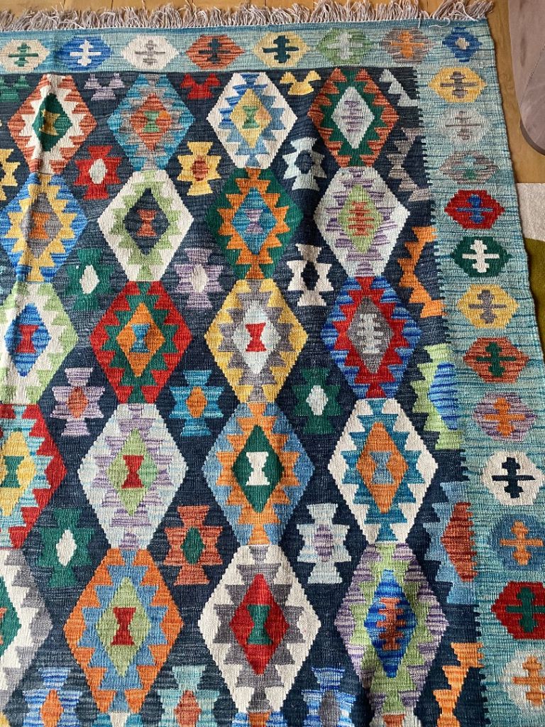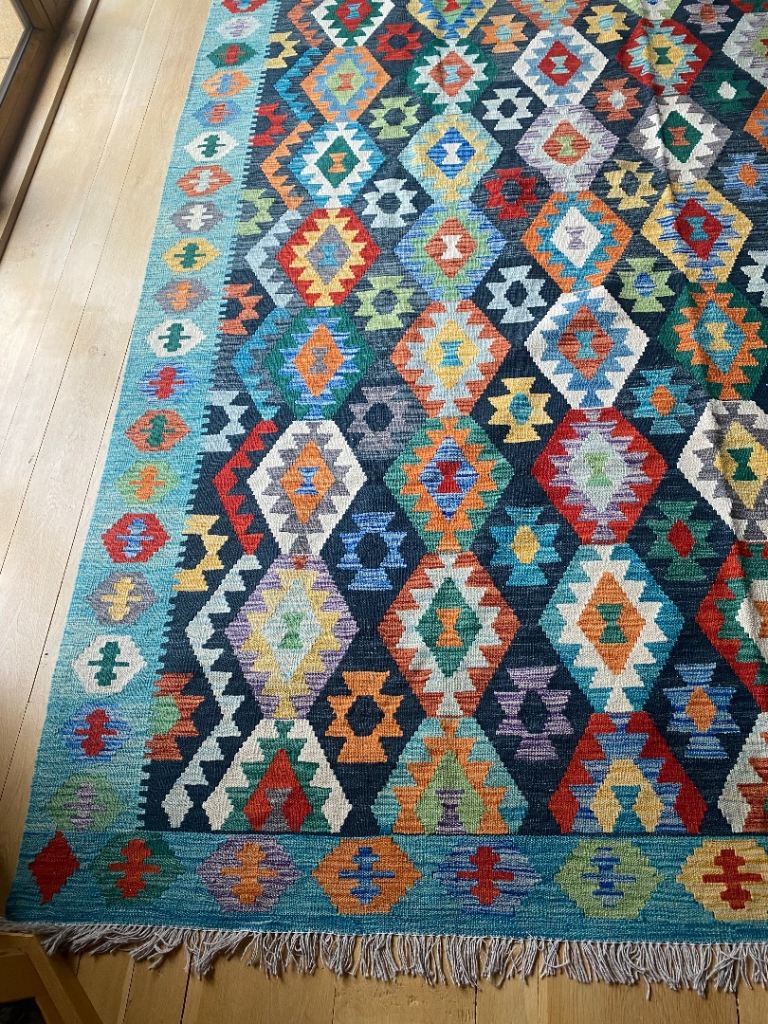 For sale is this large Afghan Kilim rug that we have owned from new.