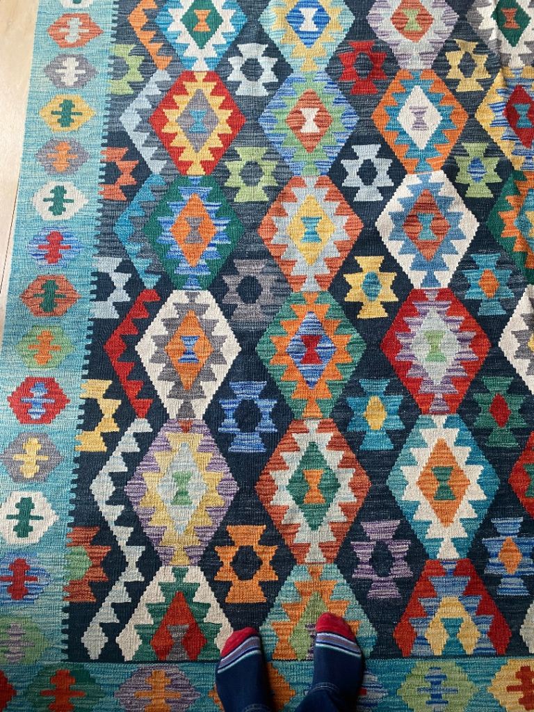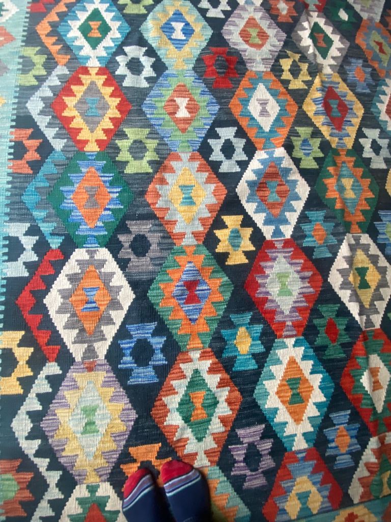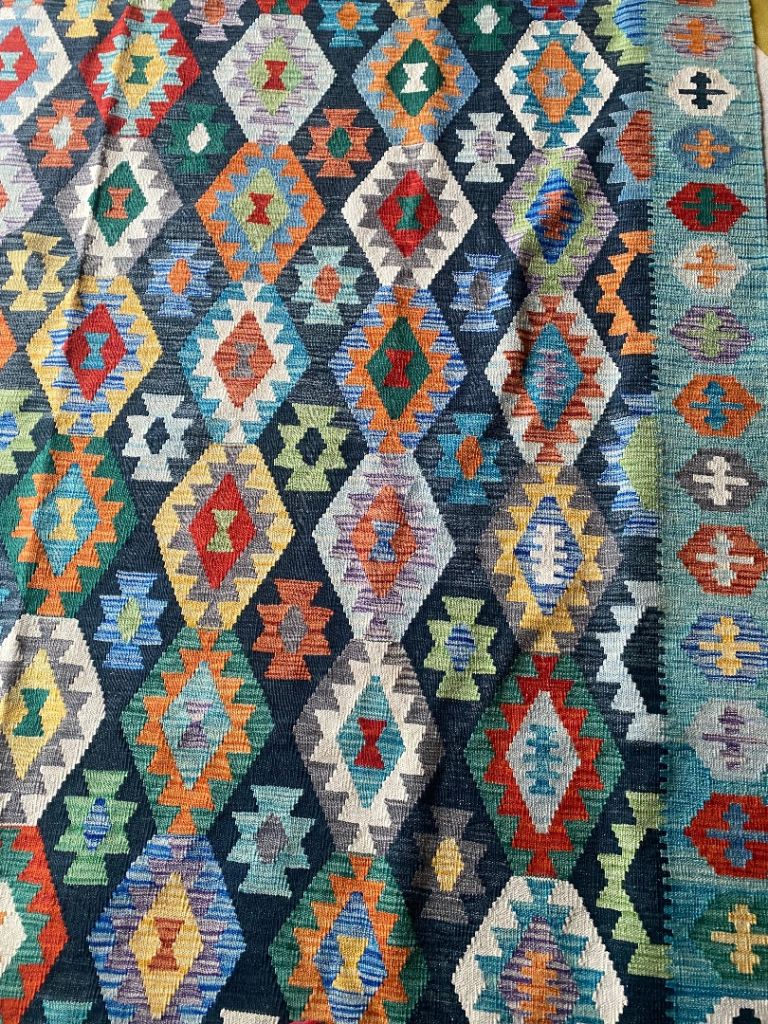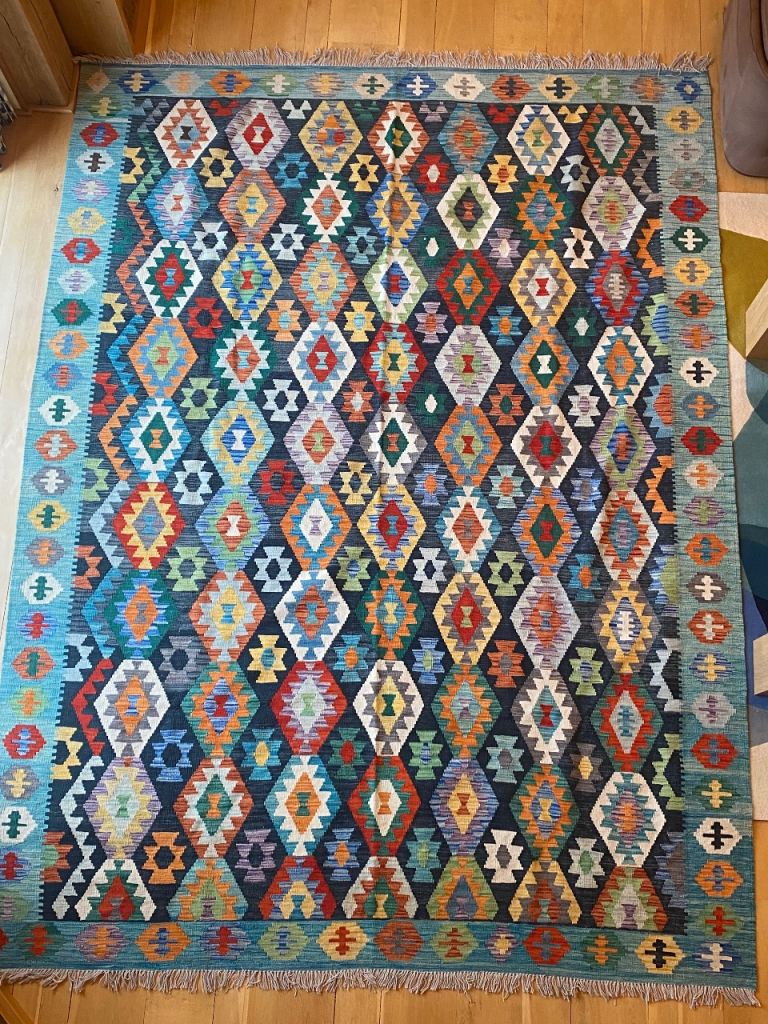 For sale is this large Afghan Kilim rug that we have owned from new.