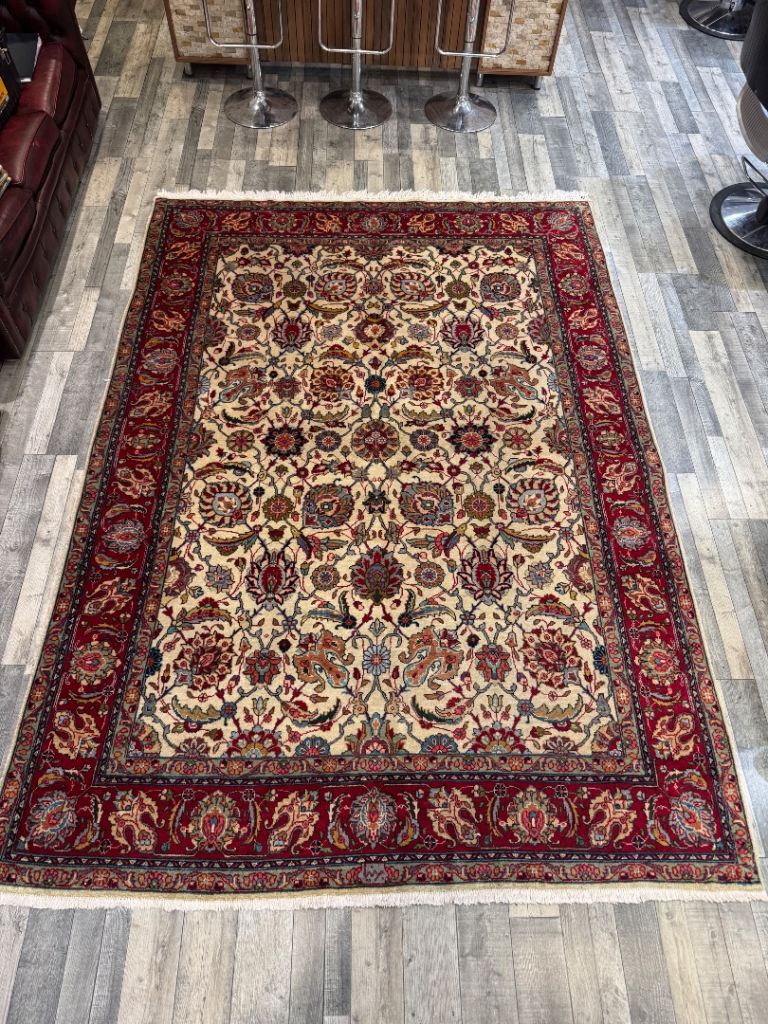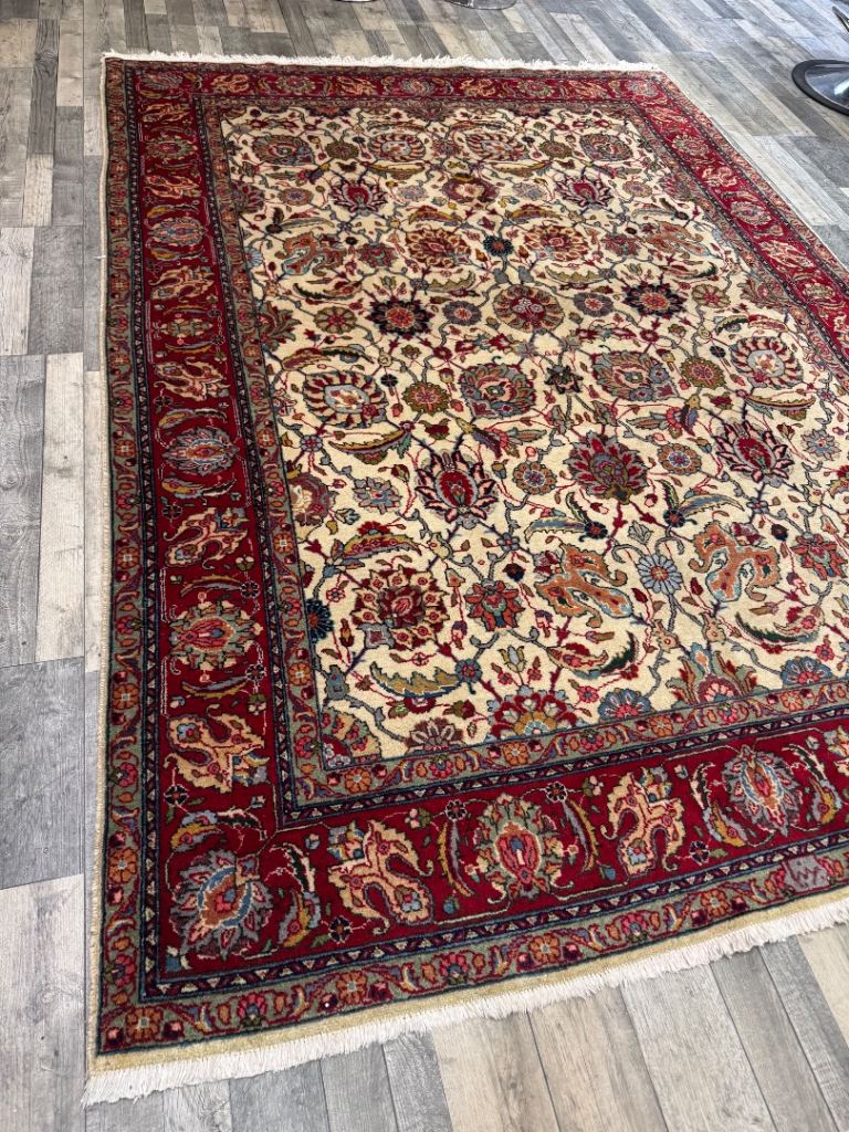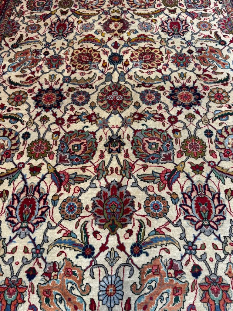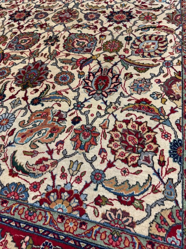 Here is luxurious handmade Persian tabriz rug with the weaver’s signature and all over design