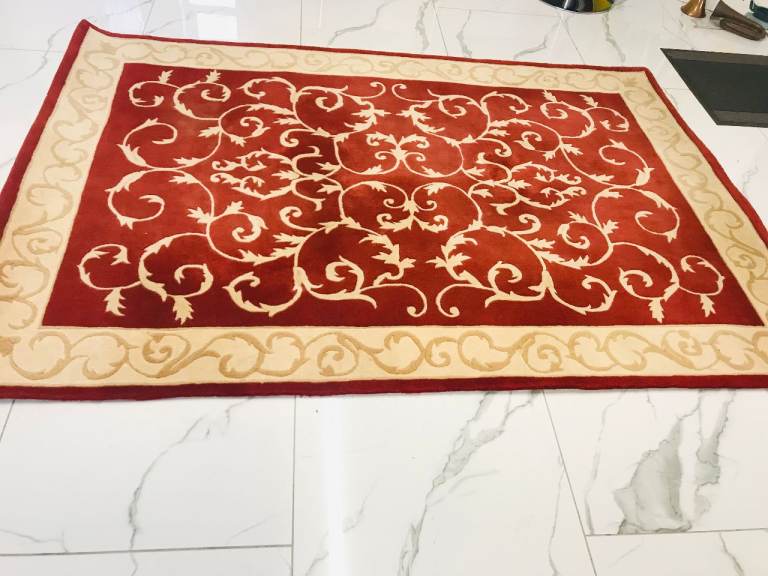LARGE RED PATTERNED WOOL RUG SIZE 230CM X 160CM