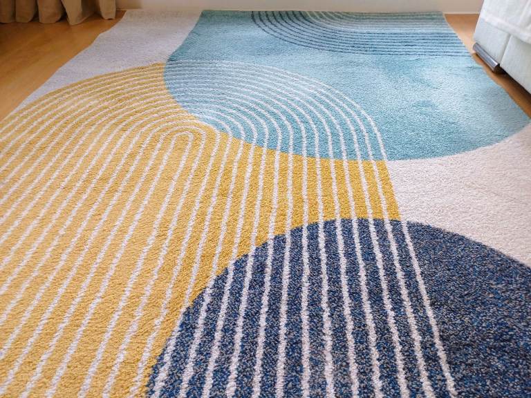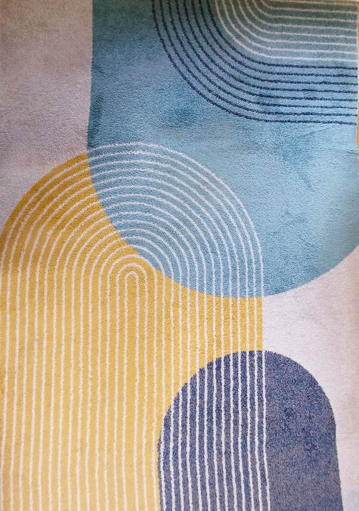 Large Retro Geometric Rug 160x230cm – Blue/Yellow