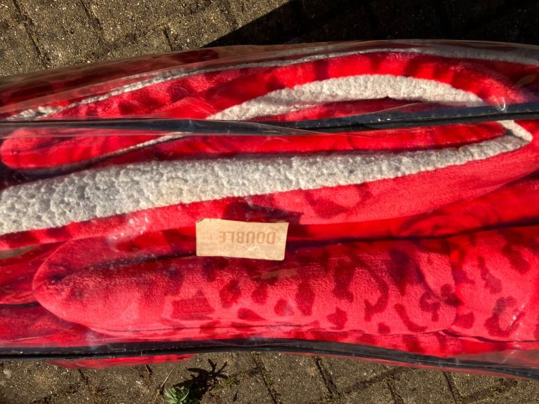 Red floor rugs with designs dimensions 5ftH x2ft 6”W plus 2 new garden or pray matts £10 Each