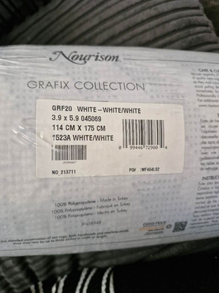 NOURISONHOME GRAFIXGEOMETRIC WHITE3'9" X5'9" AREA-RUG 114cm×175cm brand new in packaging
