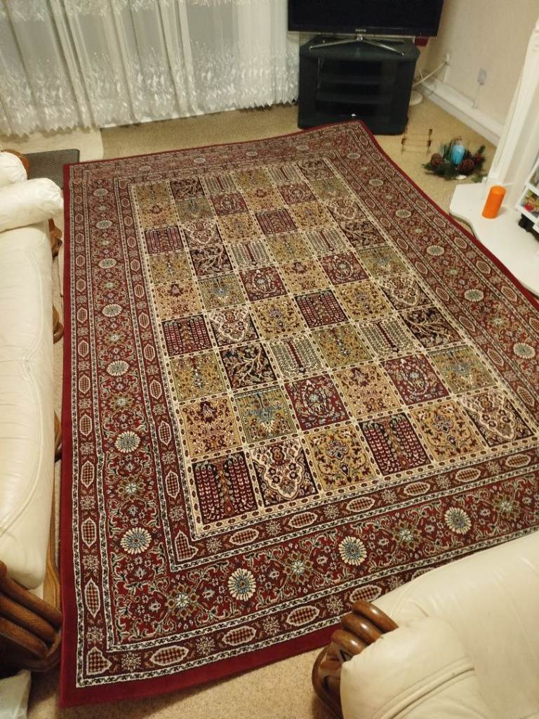 Very large IKEA Valby Ruta area rug available in good used condition. This features a classic red and multicolour traditional pattern that works well in living rooms, bedrooms or home offices.