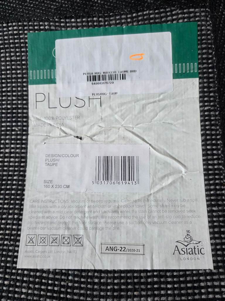 Currently retailing at £689 on Furniture Village. Came as part of sofa set purchase. Really lovely luxury rug but the colour is not suitable for our house. Rug only 2 weeks old.