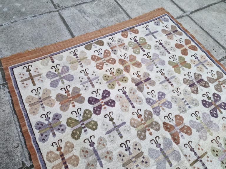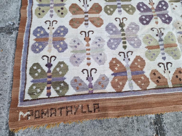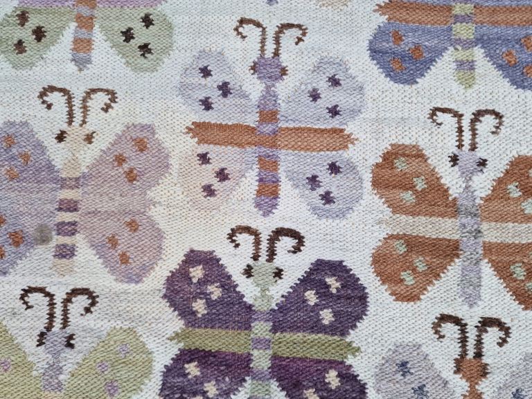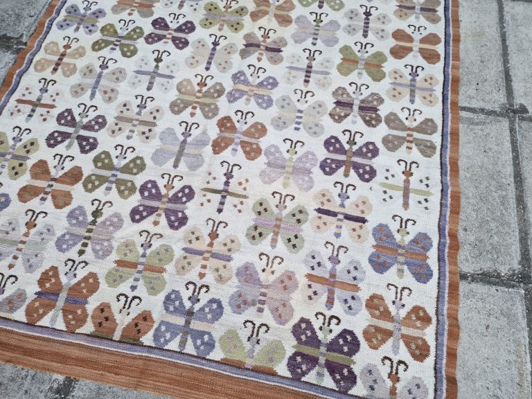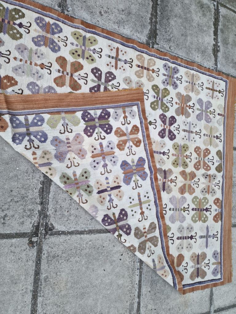 Rare (poss Peruvian) thin weave Kilim, smallish size, almost square with butterfly motifs. Nice clean condition. £120. Measures 143 by 126cm.
