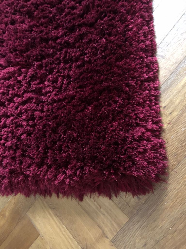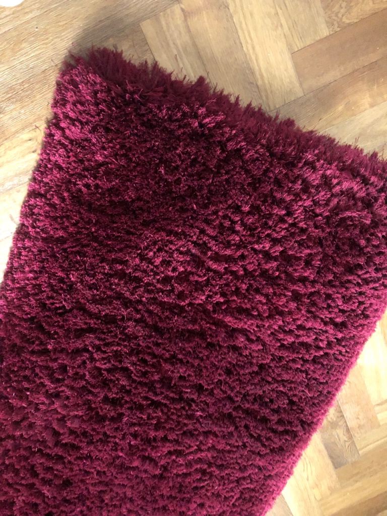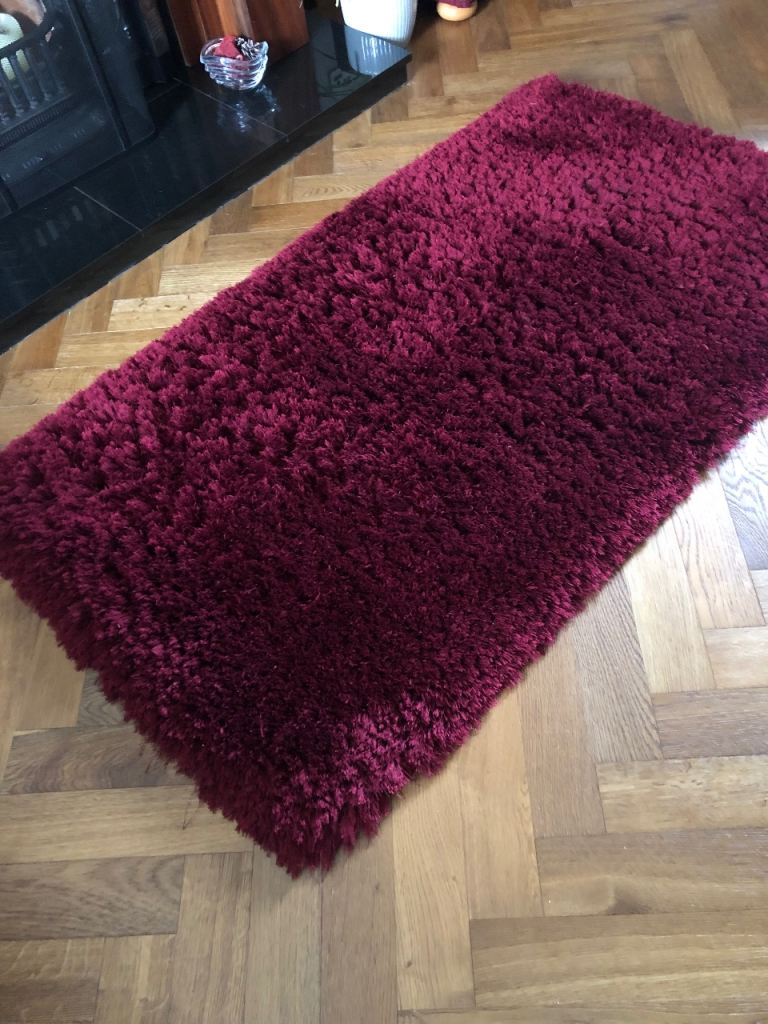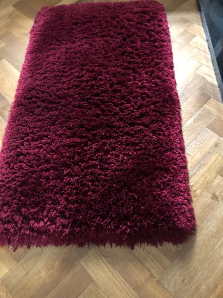 Claret Red shaggy rug in great condition. Heavy rug with hessian type backing which lies extremely flat on floor. Was bought from Dunelm. I am in Kilkeel area