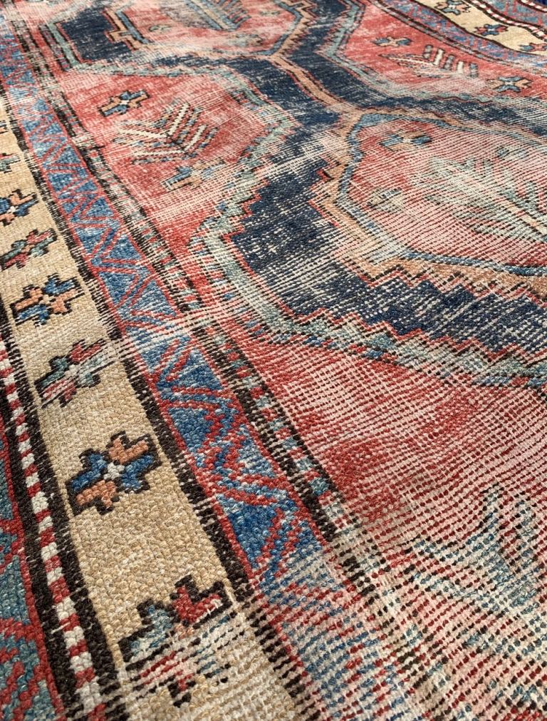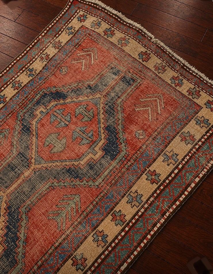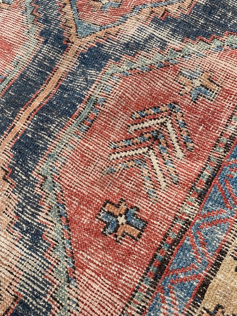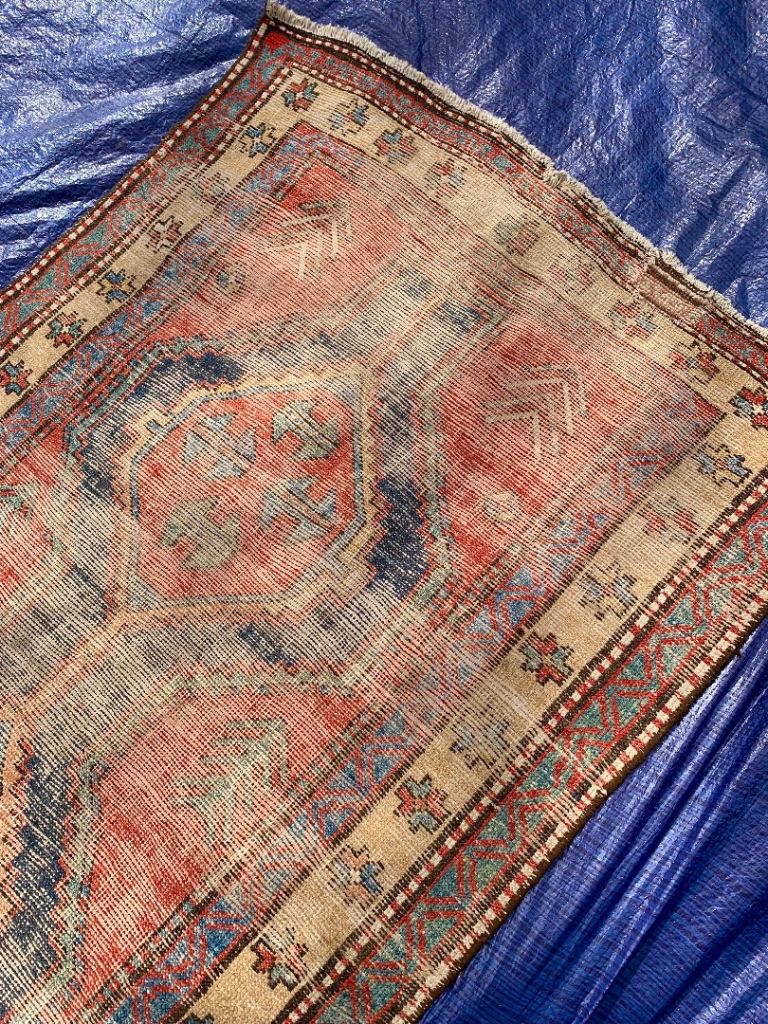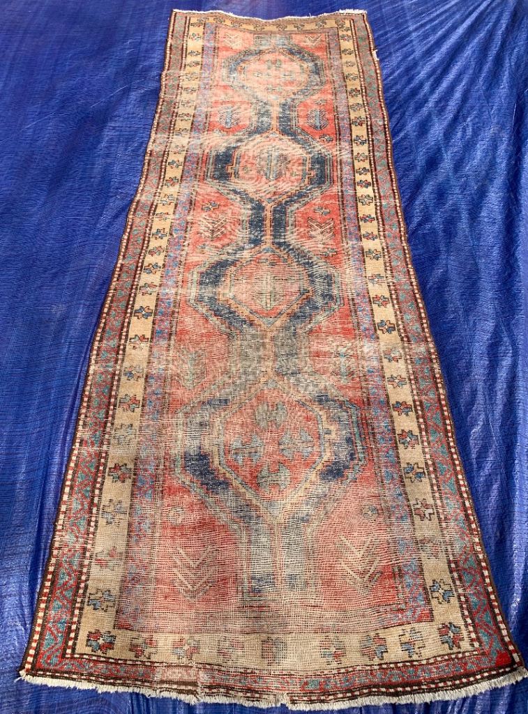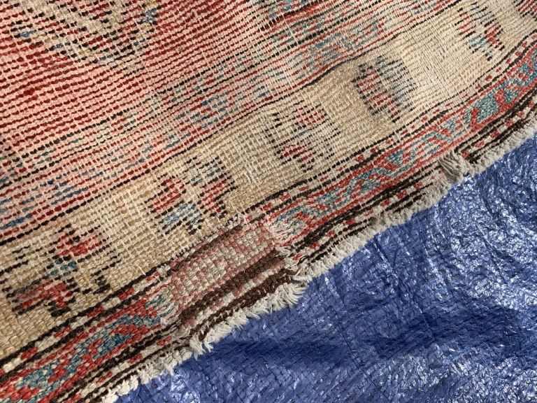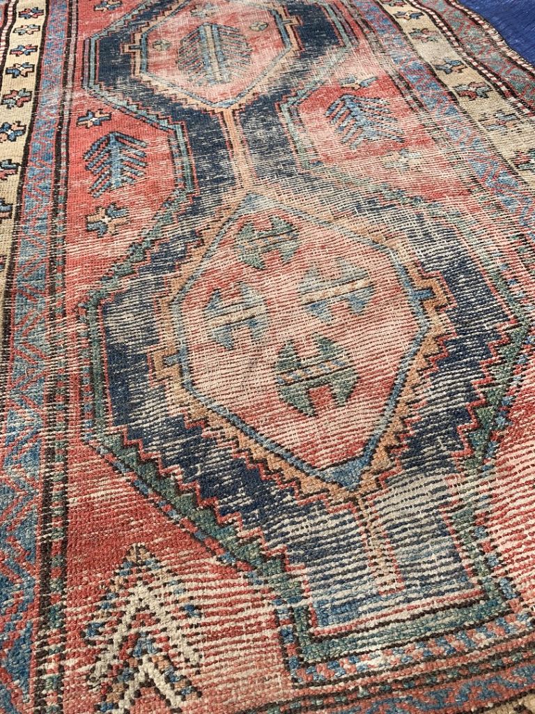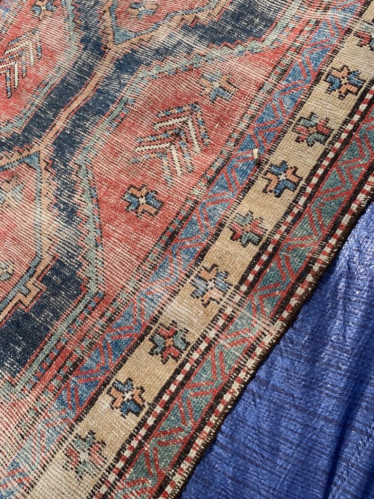 Displays very nicely indeed, is in lovely aged down condition. No holes or no stains. Minor end repair stitch but rug remain strong & stable. A very clean & tidy ready to use example.