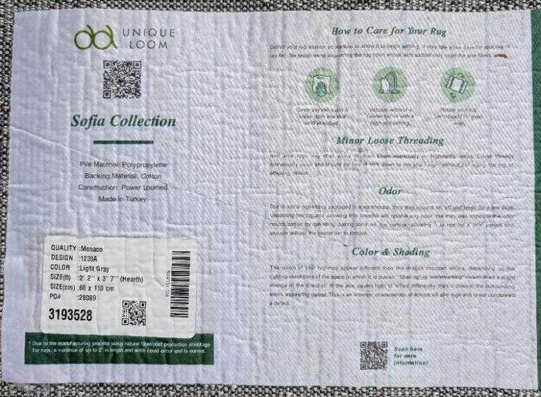 Unique Loom Sofia Collection 2ft 2" x 3ft 7" (65cm x 110cm) Monaco - Light Grey