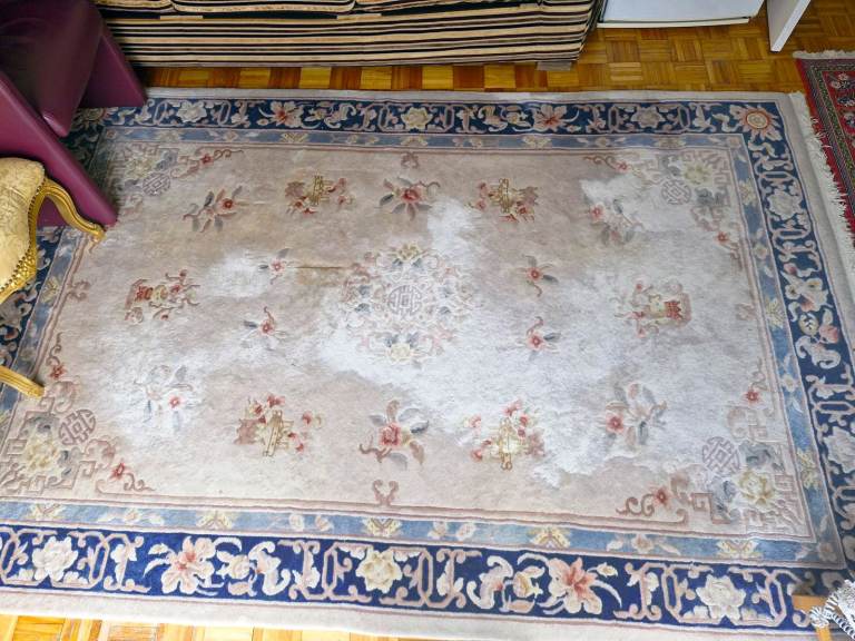 Vintage Large Hand Knotted Oriental Rug Carpet 275x185cm Chinese Art Deco Wool Handmade Beige Cream