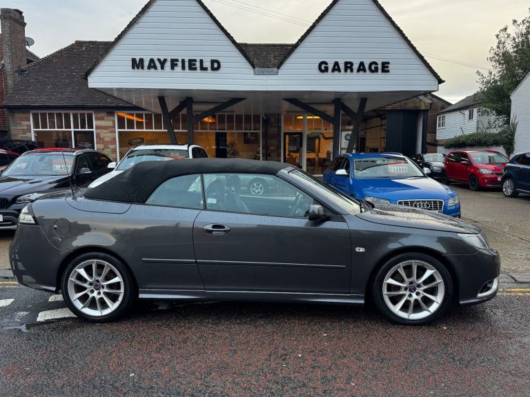 Absolutely stunning - Saab 9-3 1.9 TTiD Aero Convertible , Just 2 former keepers from new with a Full service history, Metallic grey with full black heated leather, Cruise control, Electric roof, Bluetooth, Climate control, Parking sensors, Electric mirrors, Multi function steering wheel, Alloy wheels Features Include: , 17in 5spoke low- split alloy wheels, 18in 10spoke alloy wheels, 18in 10spoke alloy wheels with tyre pressure monitoring system, black hood, bi- xenon headlights with auto levelling & pressure washers, drivers seat manual height adjust, lowered sport chassis, metal finish trim, sports leather steering wheel, es1- 7 radio & single cd & 7 speakers