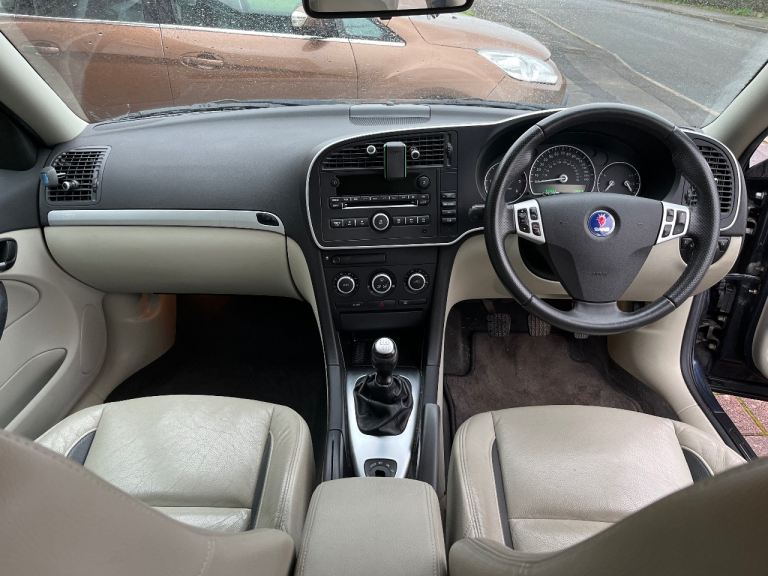 Excellent condition throughout with very minor marks. Low mileage 113645 mls. Mot 9/6/26 (no advisories) Fully stamped Saab service history from new including cambelt kits. Last changed @ 95666 mls. Only two owners! Car drives lovely with no known issues. Electrics all working correctly, Air con perfect. Cruise control etc. Full leather interior undamaged. Car has been 100% since I’ve had it and never let me down! Very strong Turbo diesel engine with no known leaks or faults. Full car history with both keys and original handbooks and toolkit. Overall a good reliable solid and genuine car ready to drive away. Advertised elsewhere.