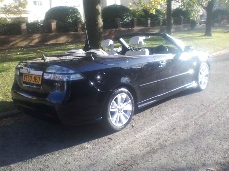 SAAB 9-3 CONVERTIBLE 1.9 TiD VECTOR SPORT...FIRST REGISTERED 28/01/2011 '60' PLATE.. FINISHED IN GLEAMING BLACK WITH COMPLIMENTING TAUPE/BLACK LEATHER INTERIOR.. BLACK ELECTRIC SOFT TOP.. ONLY 69100 miles (may increase slightly) BY JUST THREE FORMER KEEPERS..MOT TEST IS THROUGH UNTIL 27/10/2026 WITH NO ADVISORIES..