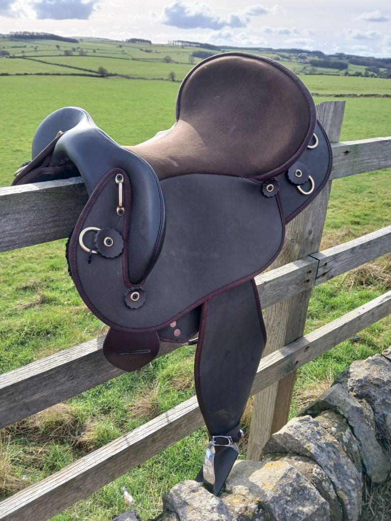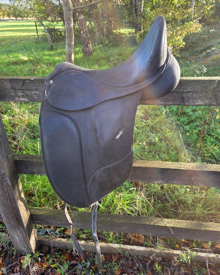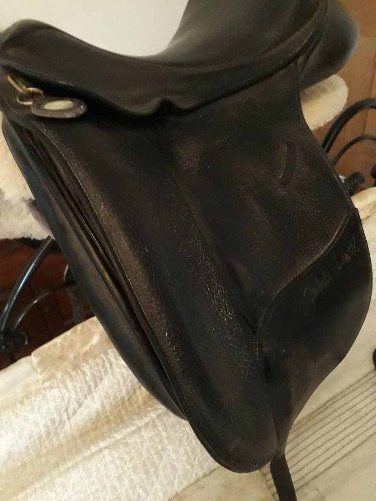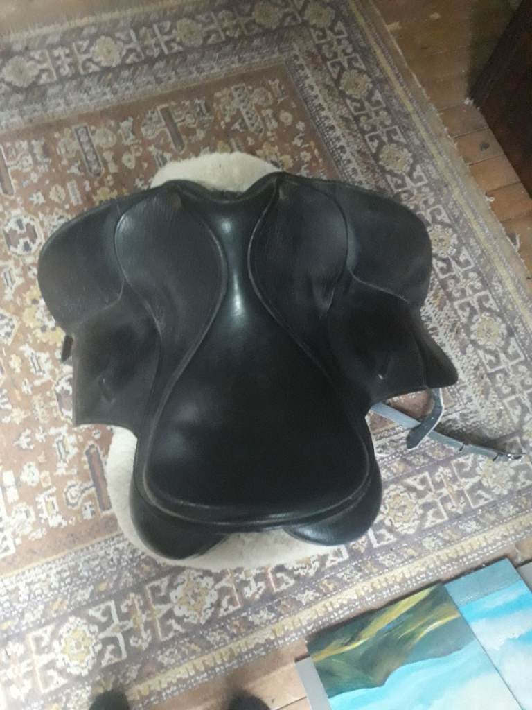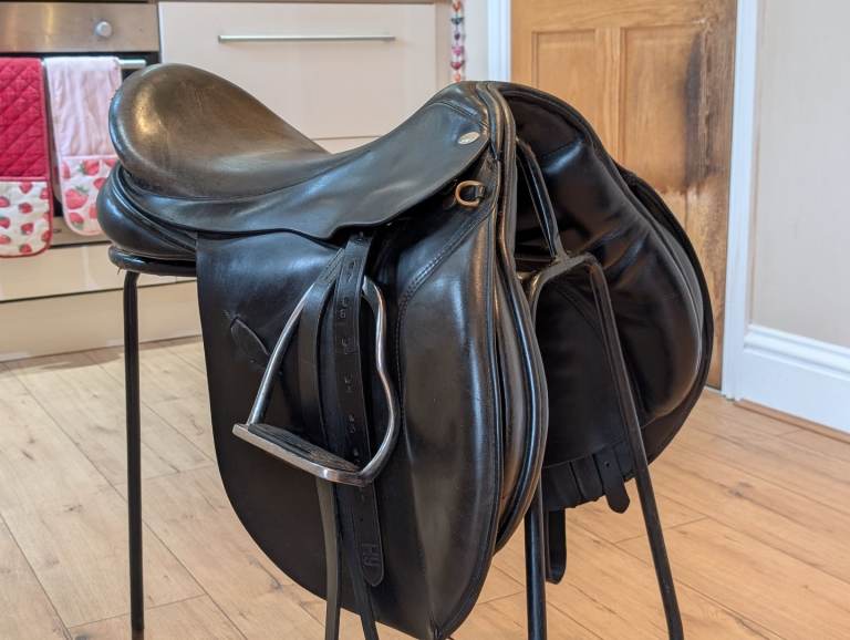 Bates Isabell Dressage Saddle, 17.5" Black. Beautiful condition, extremely comfortable deep seat, large adjustable knee blocks, 'Y' girthing system. Changeable gullet bar system, wide bar currently fitted. Condition is good.. Really sad to see this go, but my riding days are over.