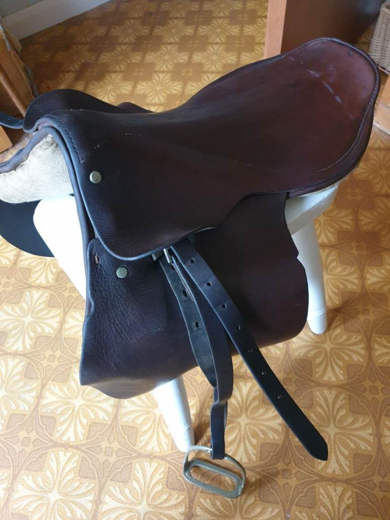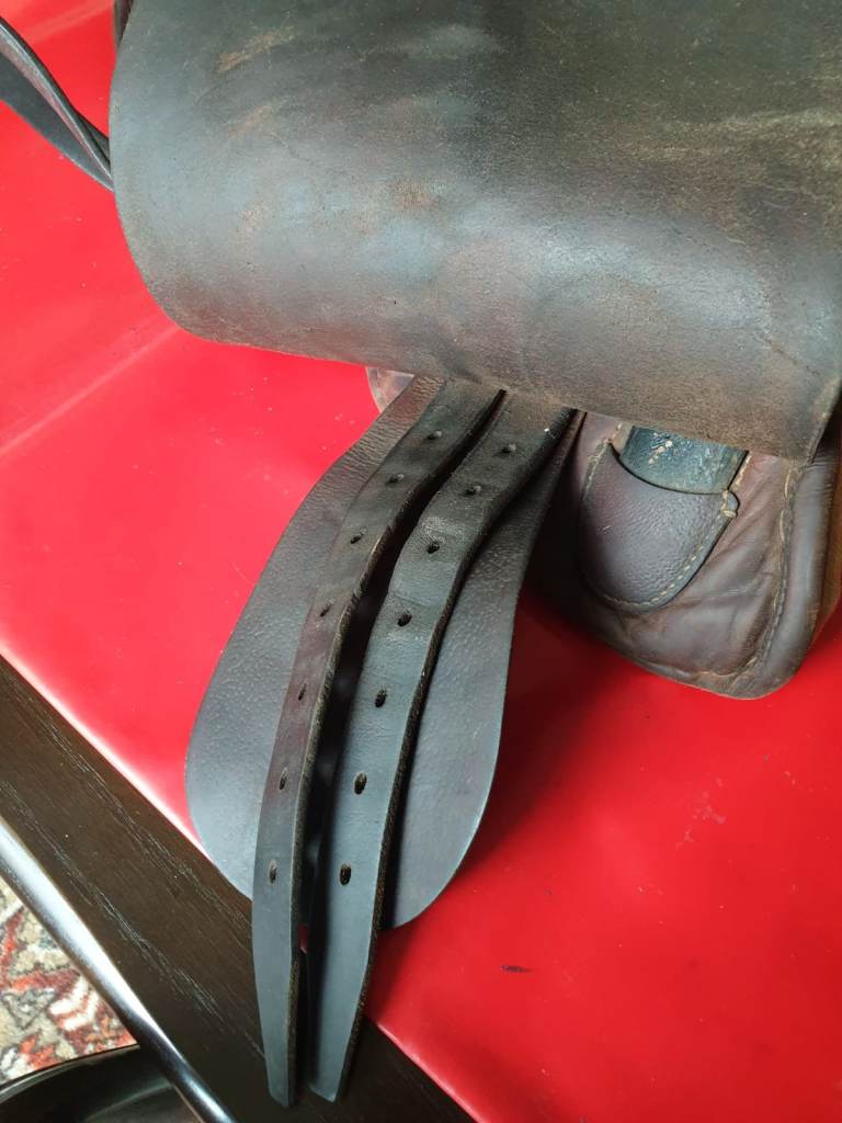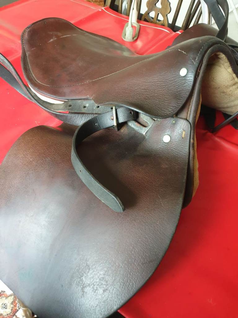 This saddle, with stirrups attached, is in fair condition and needs a little TLC but would still make a lovely usable saddle once oiled.